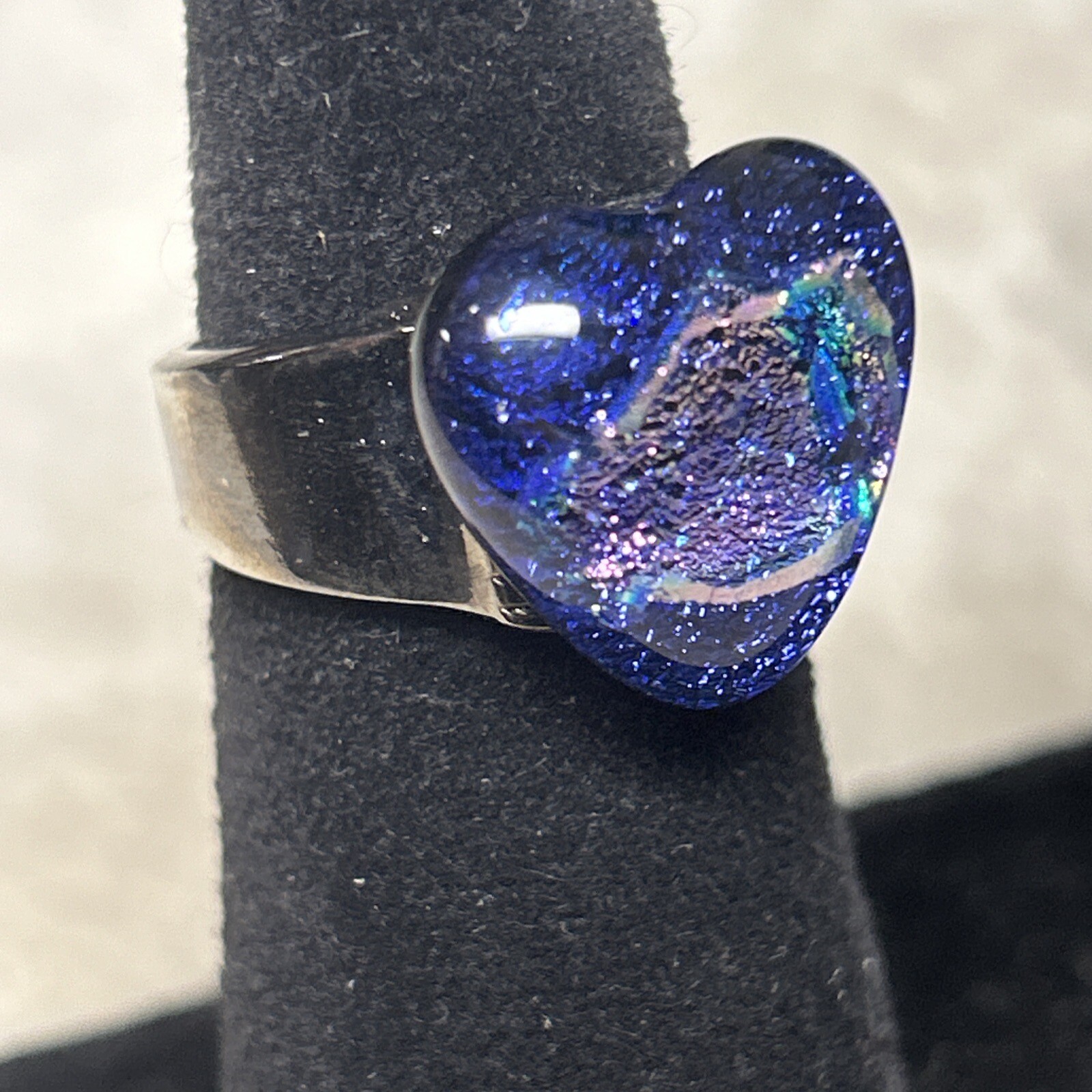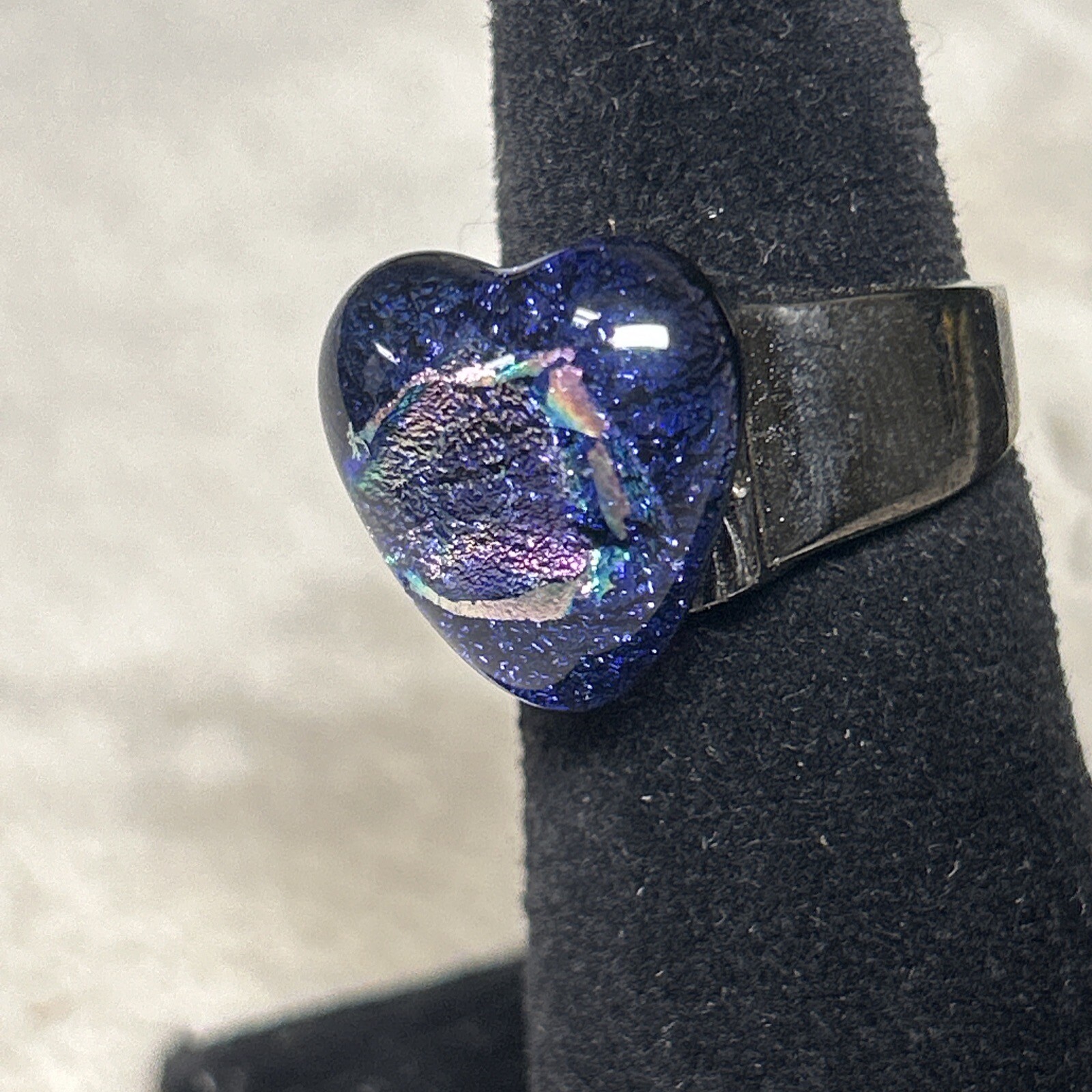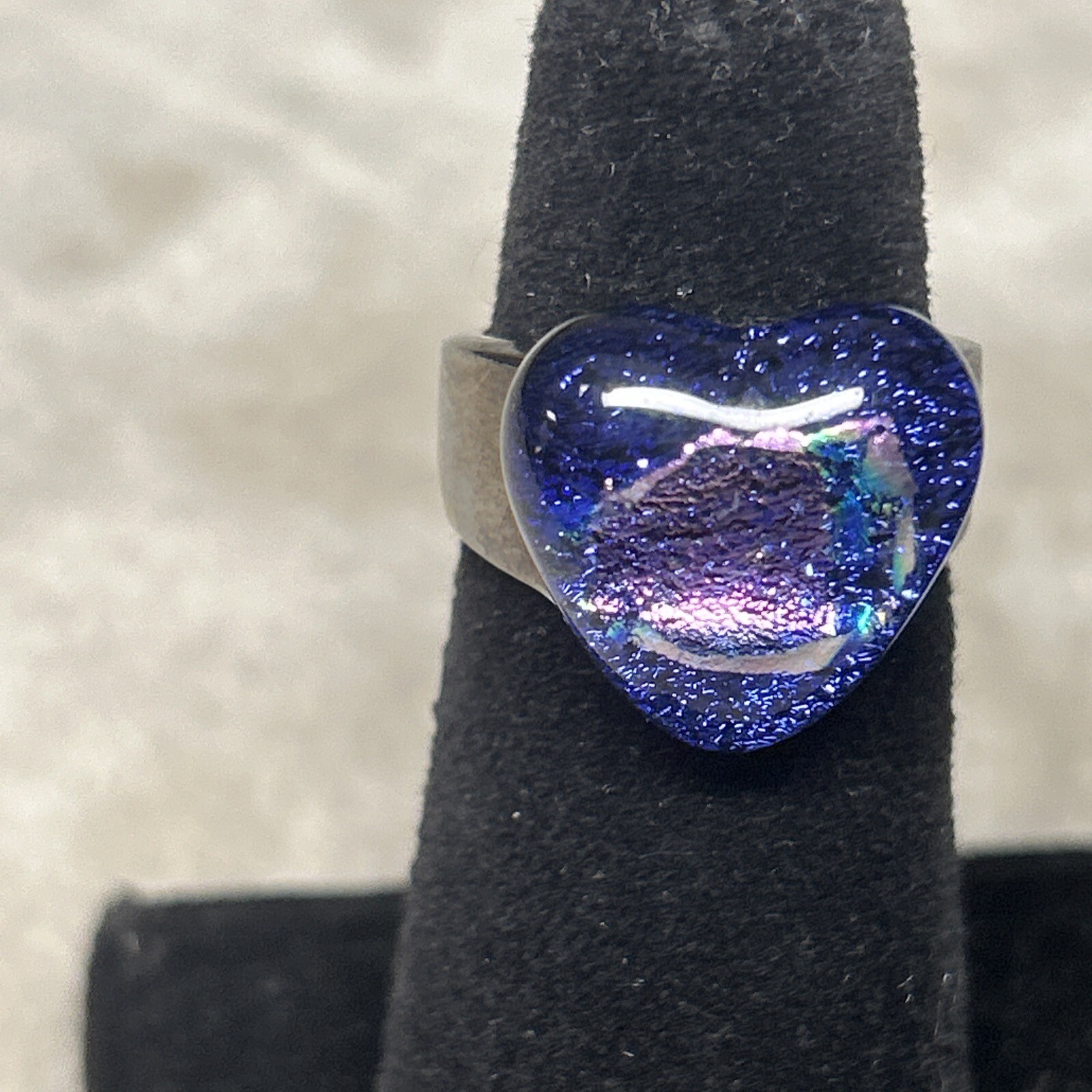 как выглядит Artisan Fused Glass Heart Ring Size 7.5 фото