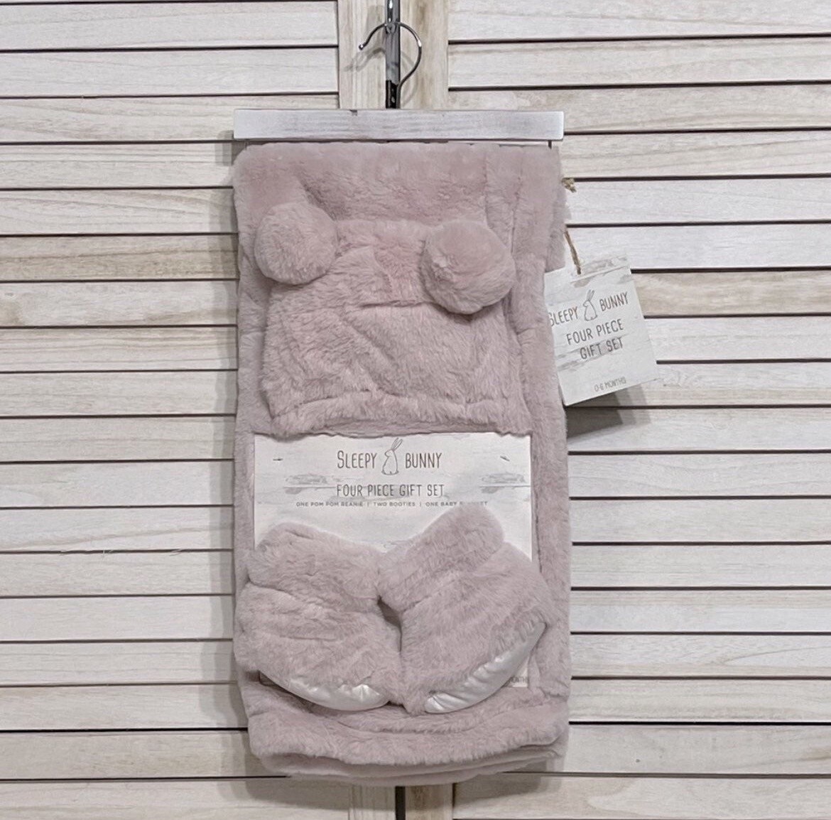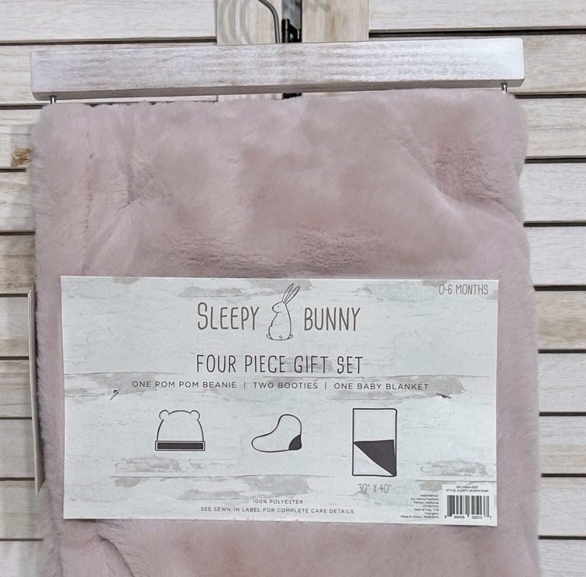NWT Sleepy Bunny Four Piece Gift Set For Baby 0-6 Months Soft pink