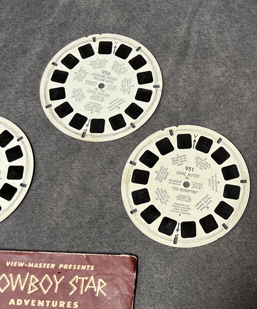 • 3 VINTAGE VIEWMASTER REELS SLEEVES COWBOY ROY ROGERS GENE AUTRY HOPALONG CASSIDY