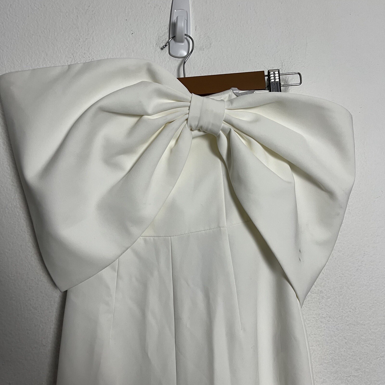 как выглядит Ever New Fallen Shoulder Bow Strapless White Wide Leg Jumpsuit Size 2 XS NWT фото