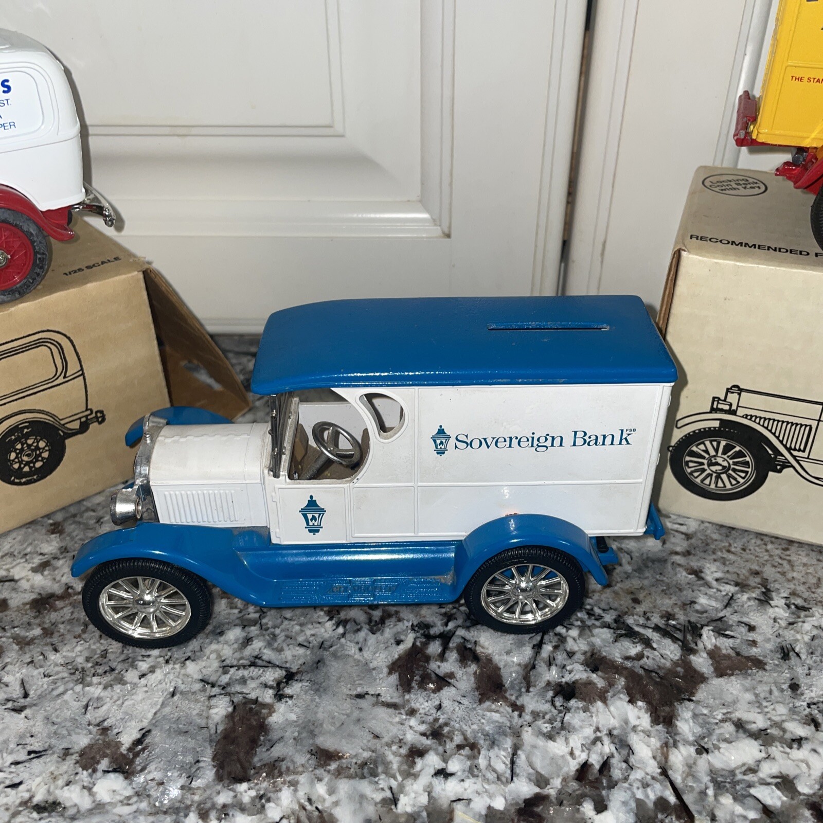 как выглядит ERTL Die-Cast 3 pcs 1923, 1932 Panel Trucks Bank Soverign, Grauers, Arm Hammer фото