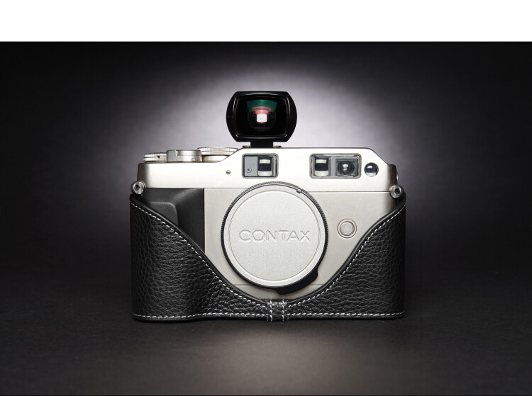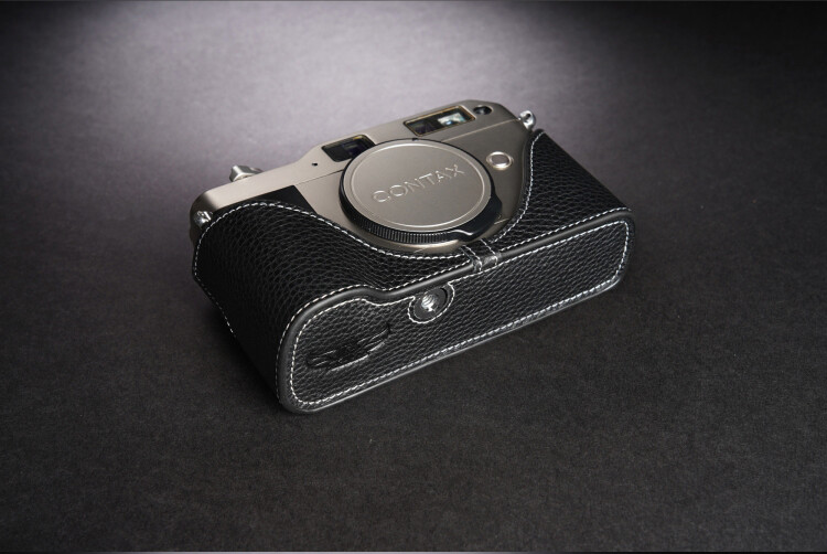 Real Black Leather Camera Case Half Pouch Hand Strap for Contax G2 G1