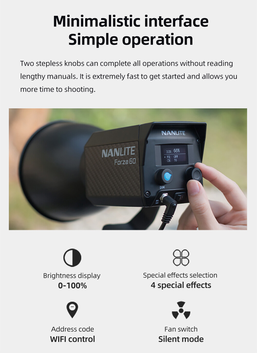 NANLITE Forza 60 60w LED Video Light Daylight Outdoor Photography Lighting 5600K