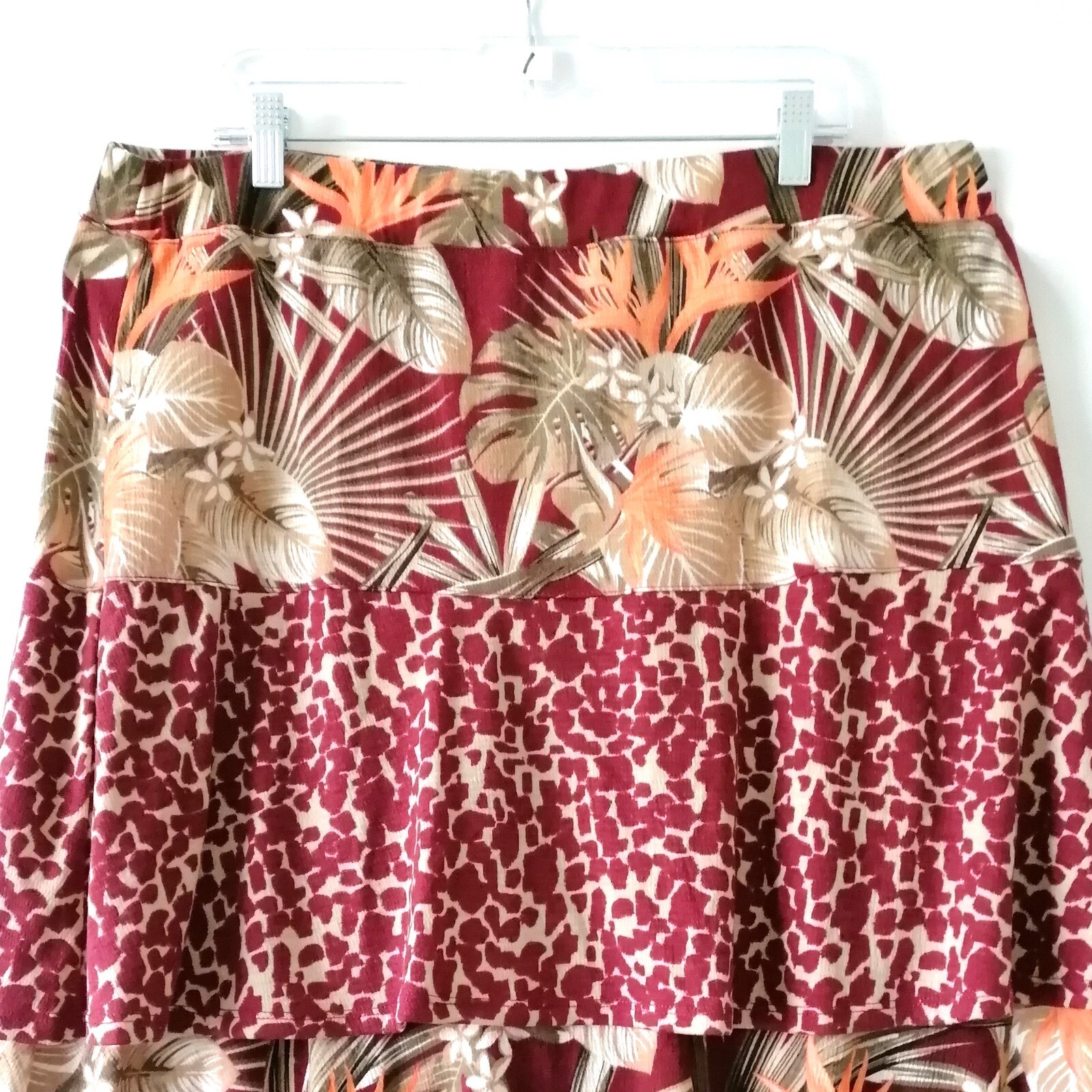 как выглядит Cato Womens Tibetan Red Floral Leaf Print Ruffle A Line Skirt Size XL фото