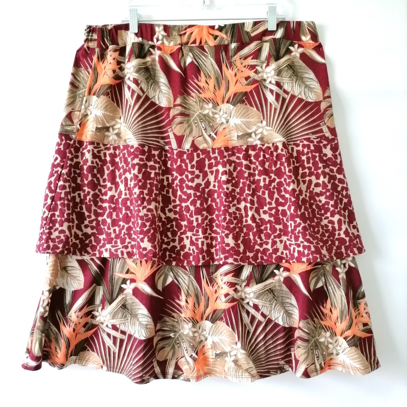 Cato Womens Tibetan Red Floral Leaf Print Ruffle A Line Skirt Size XL