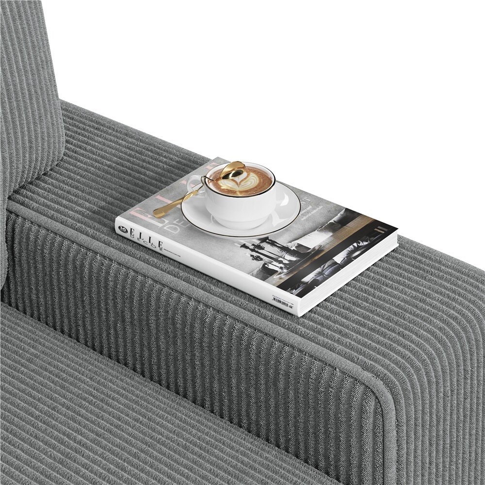 Modern Corduroy Fabric Sofa Couch with Side Storage Pockets, USB Charging Ports