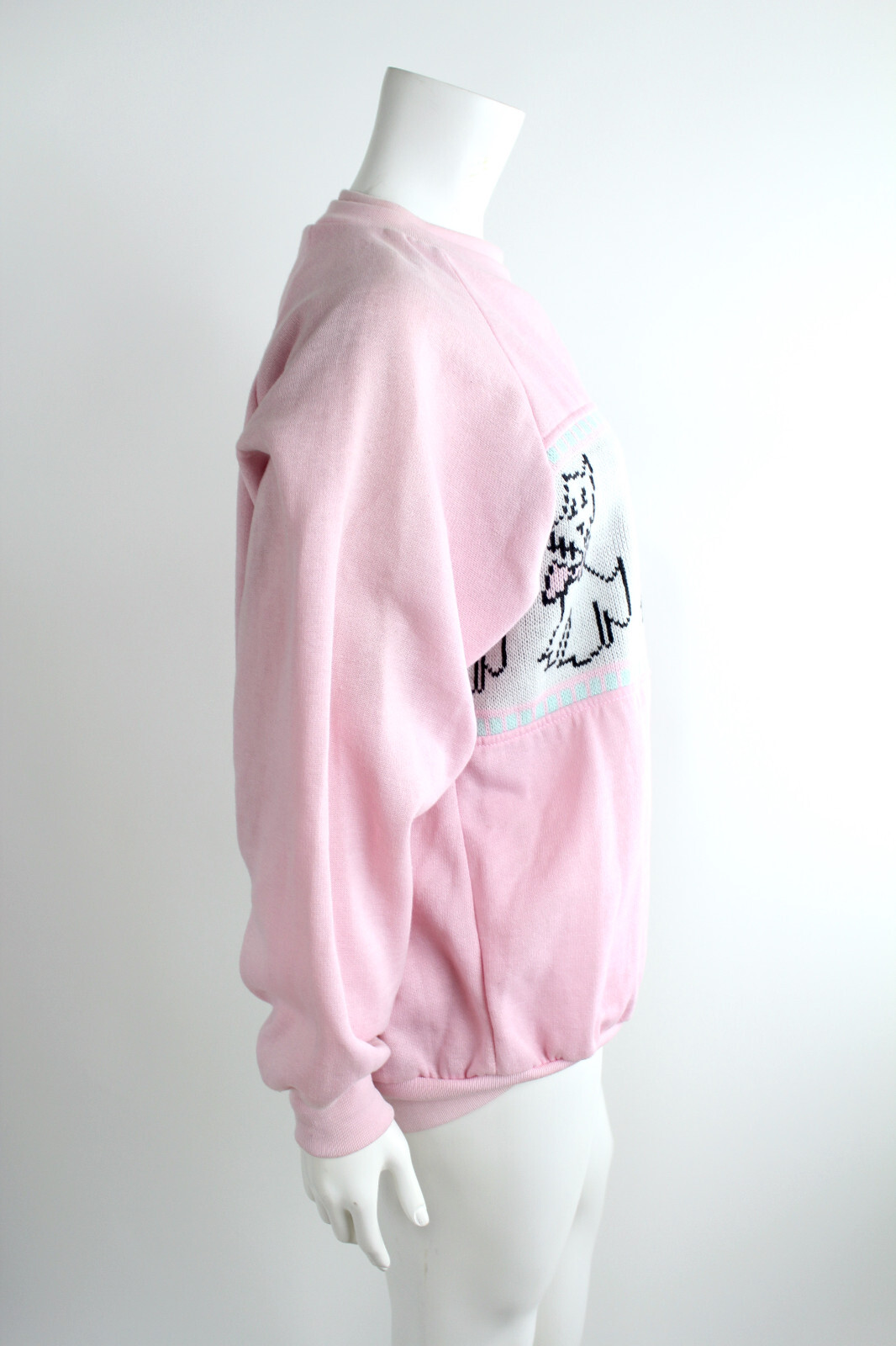 Vtg 80s Terrier Dog Raglan Sweatshirt Pullover Top Novelty Crewneck Knit Sweater
