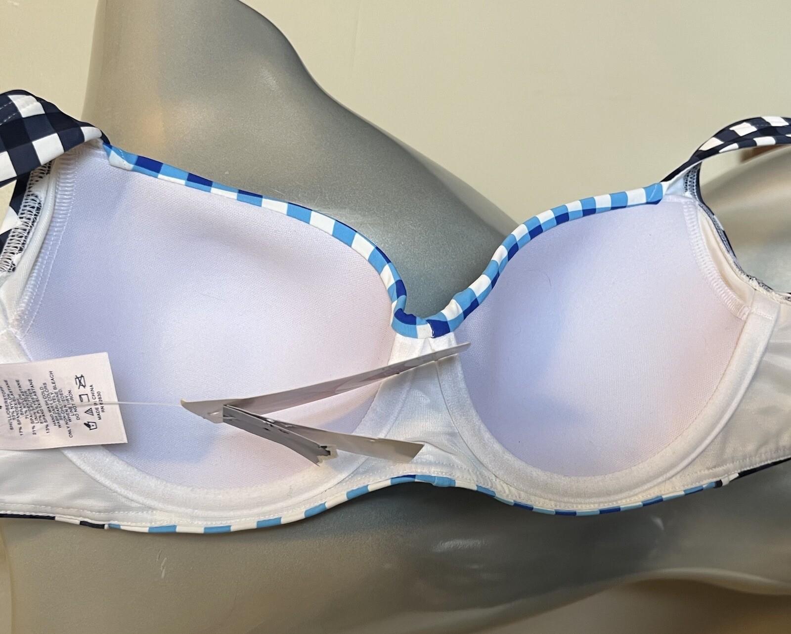 как выглядит Draper James x Lands End Womens Bikini Swim Top Size 4 Blue Checkered Twist NEW фото