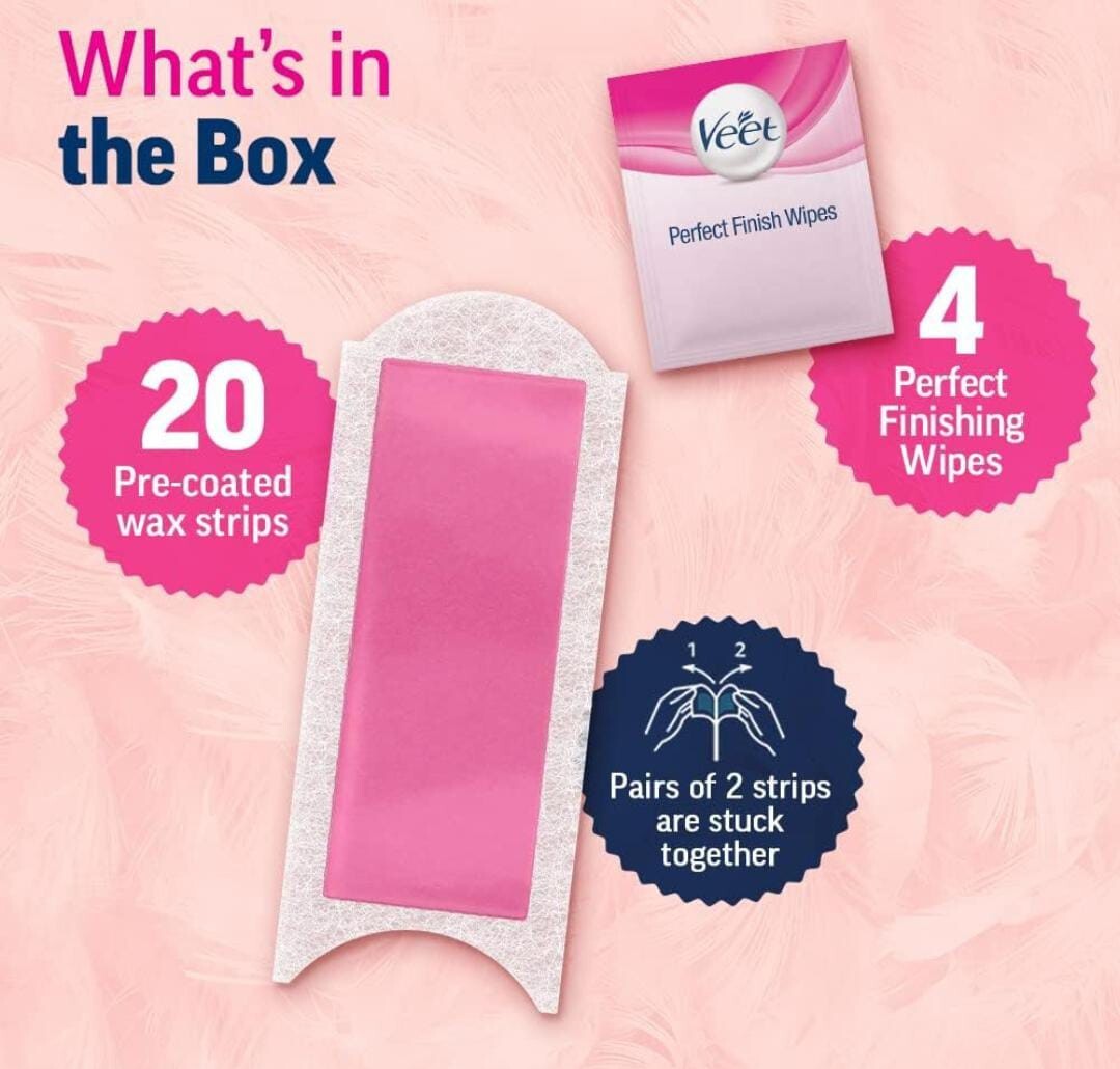 Veet Ready to Use Wax Strips for Normal Skin Body Legs 20 Strips