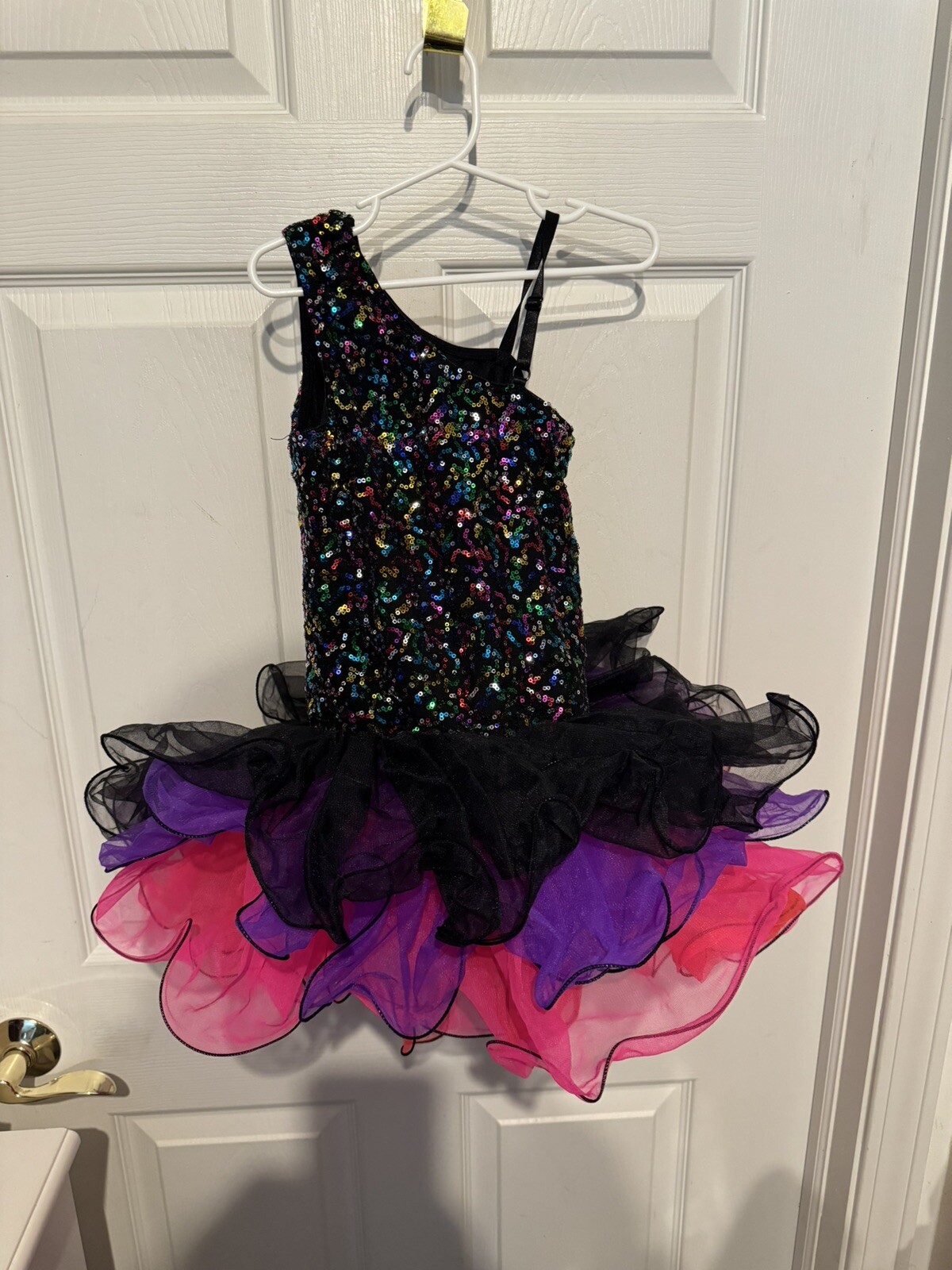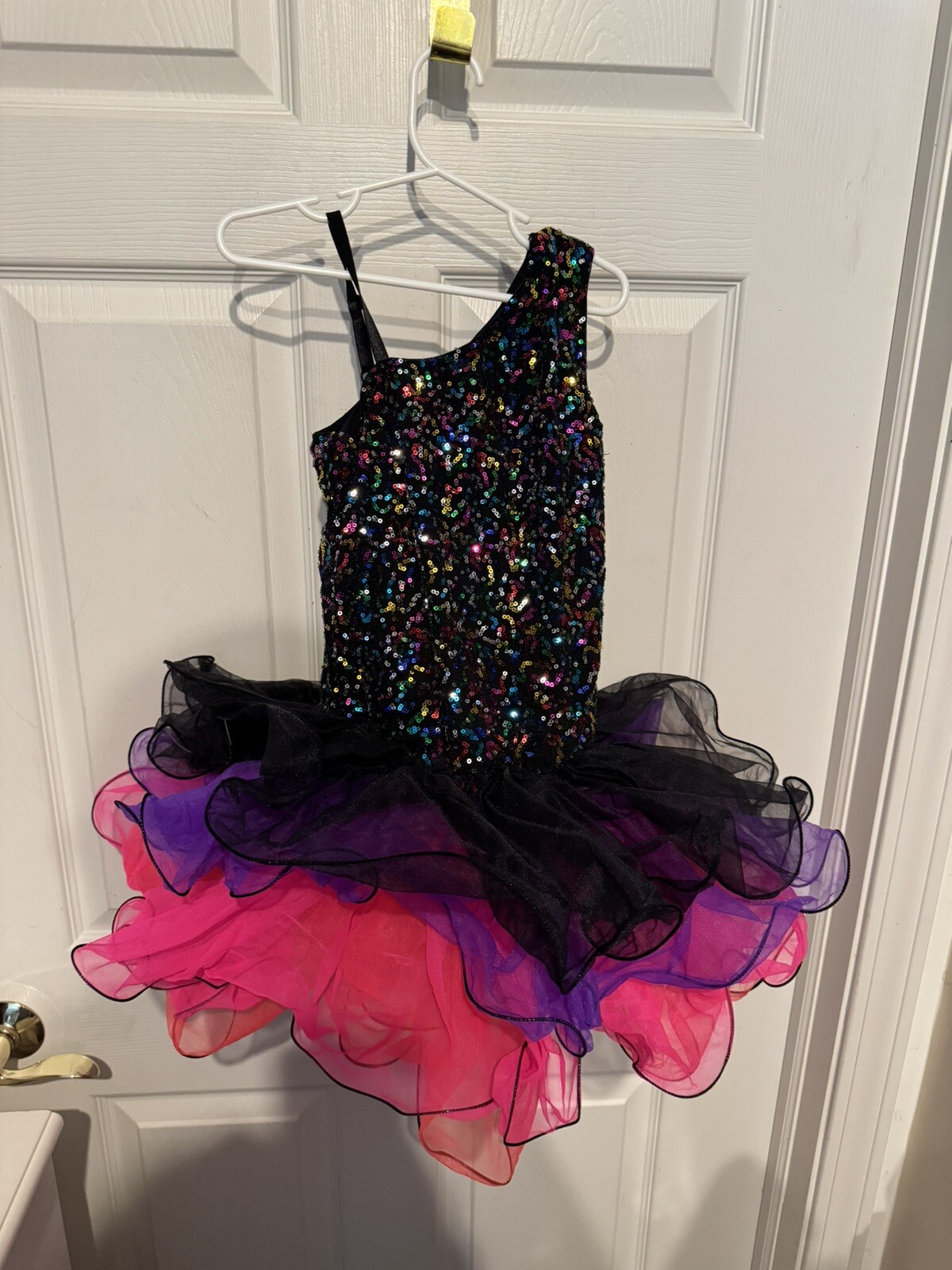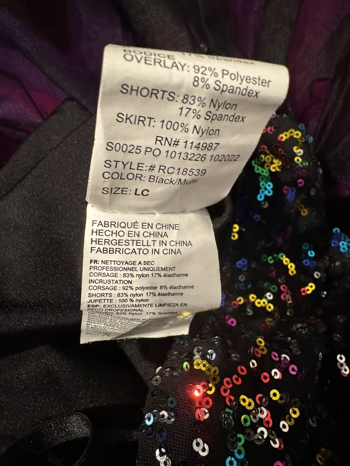 как выглядит Revolution Dancewear Black Pink Purple Sequin Dance Tutu Costume Child Size L фото