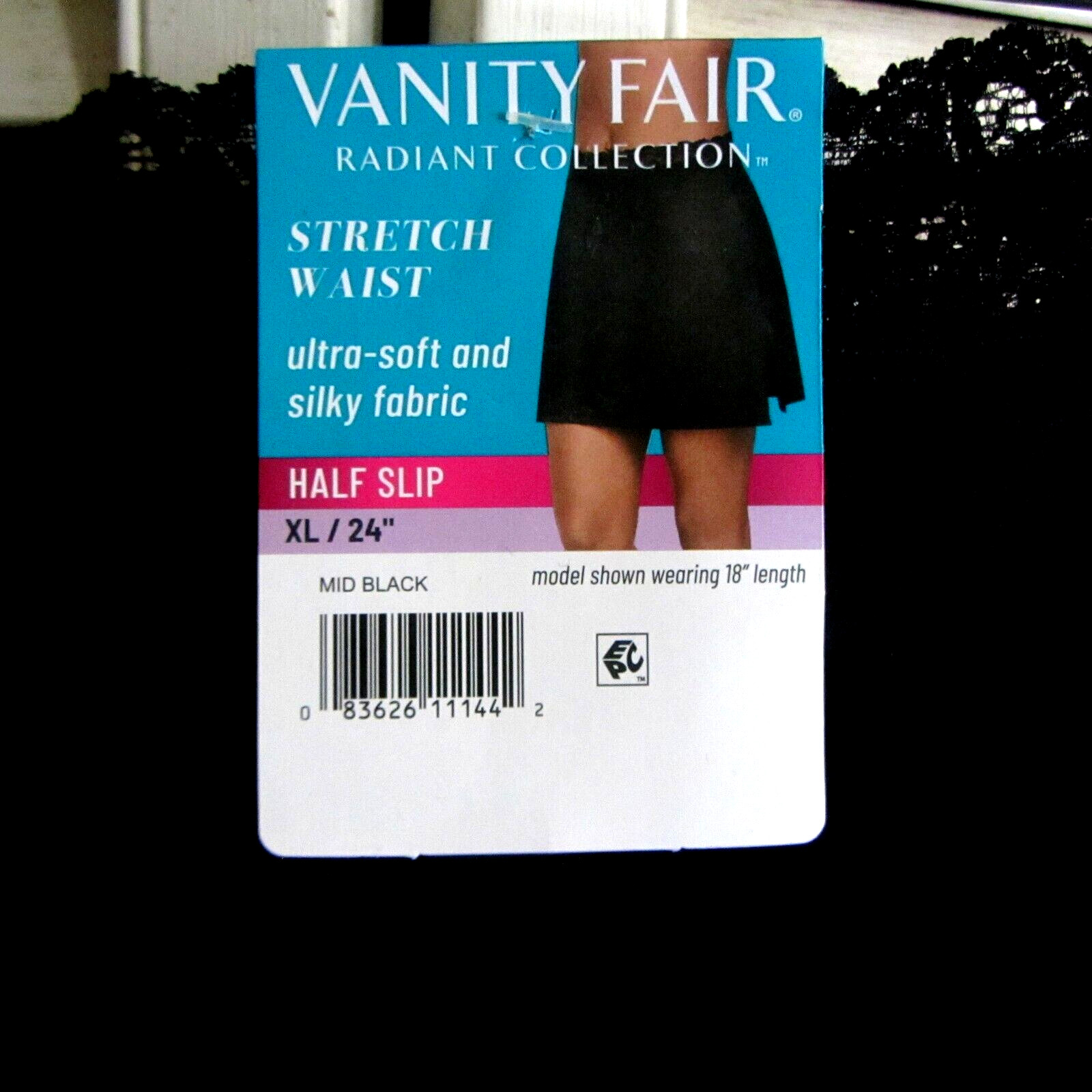 как выглядит VANITY FAIR RADIANT HALF SLIP STRETCH WAIST--SOFT SILKY-NWT-BLACK--XL/24" фото