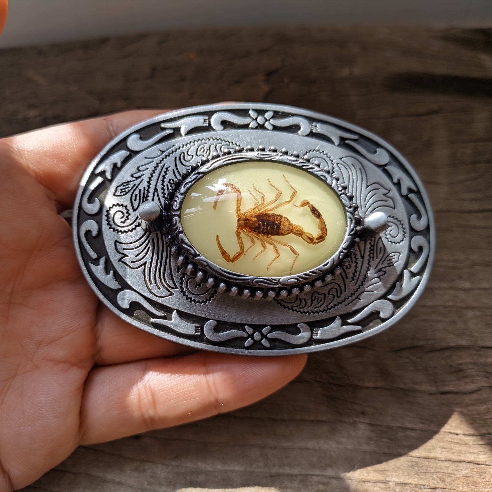 как выглядит Lumious Scorpion Mens Belt Buckle Inlay Flower- Western Cowboy Buckle фото