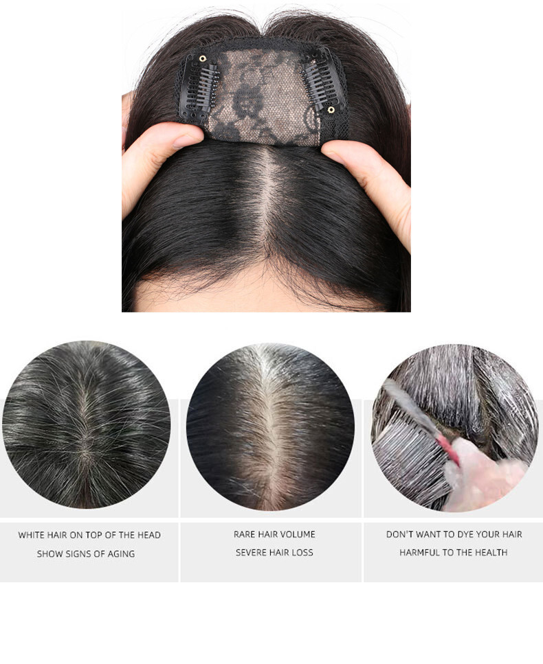 18 Straight 100 Remy Human Hair Clips in Top Toupee Hairpiece With Air Bangs