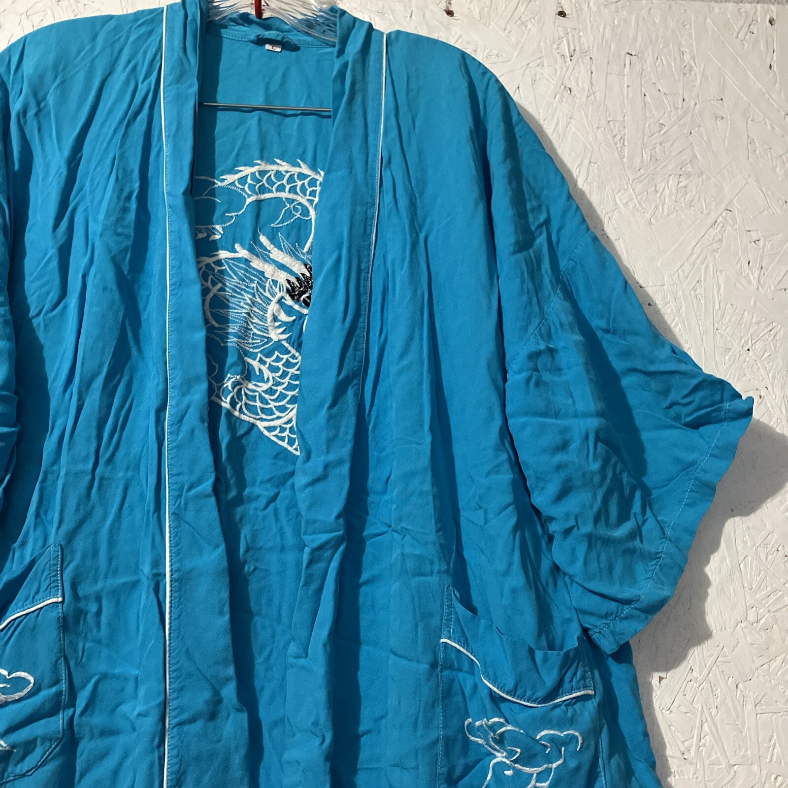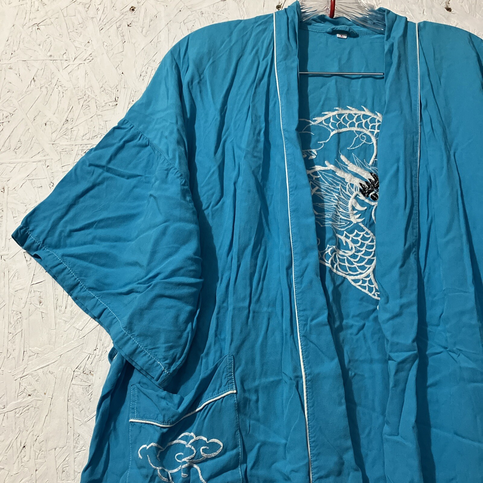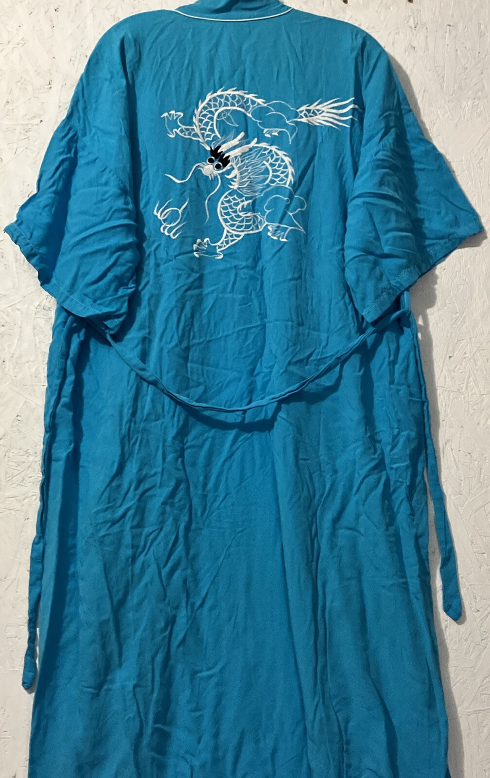 как выглядит Japanese Kimono Long Turquoise Embroidered Dragon Size Large Robe Lounge фото