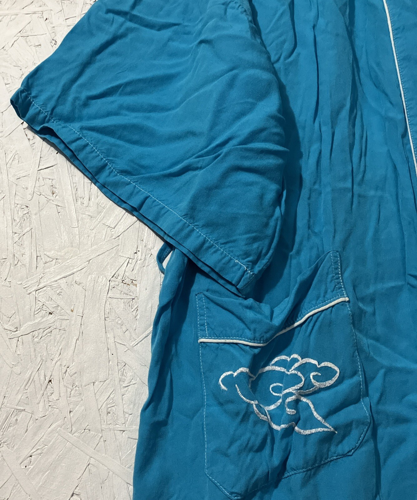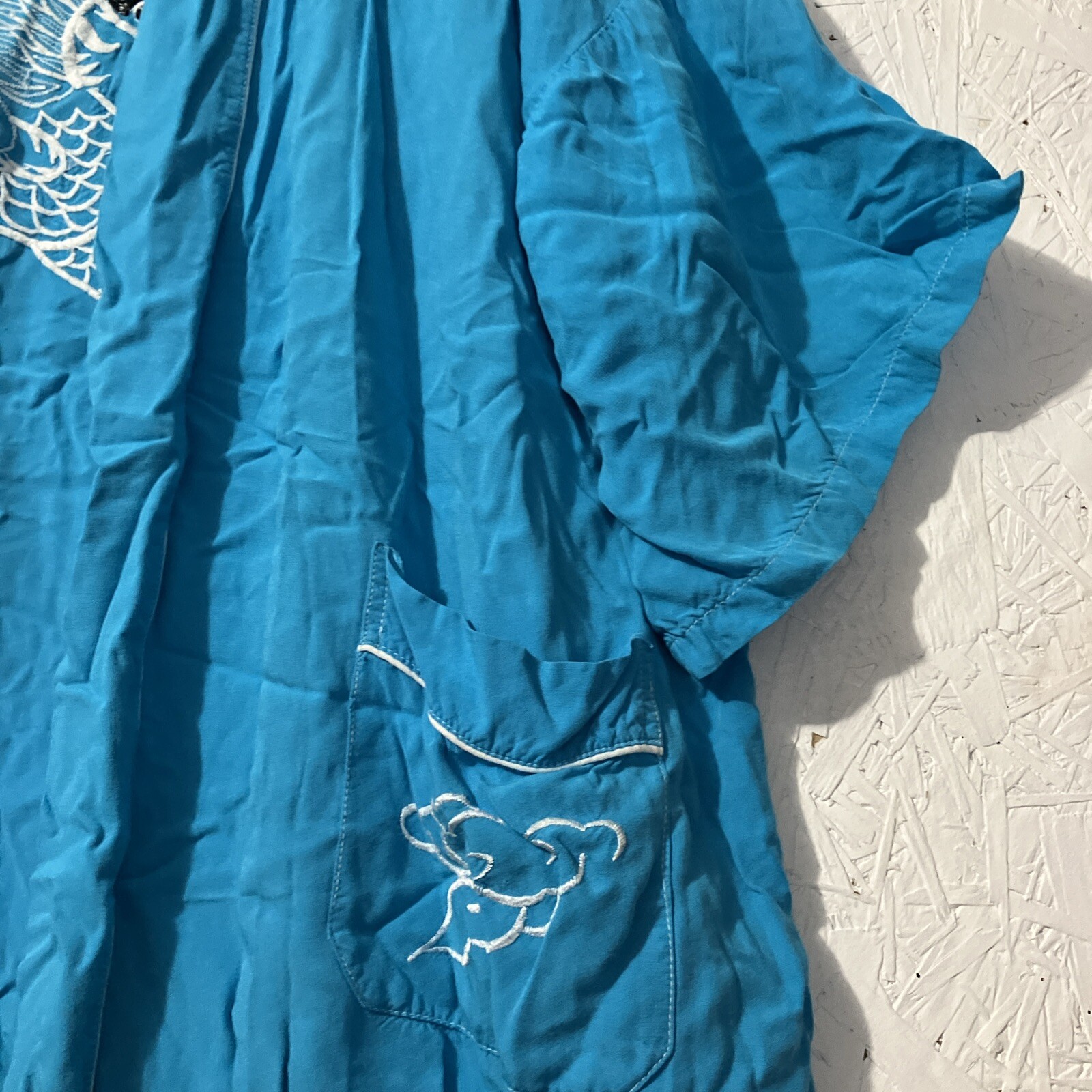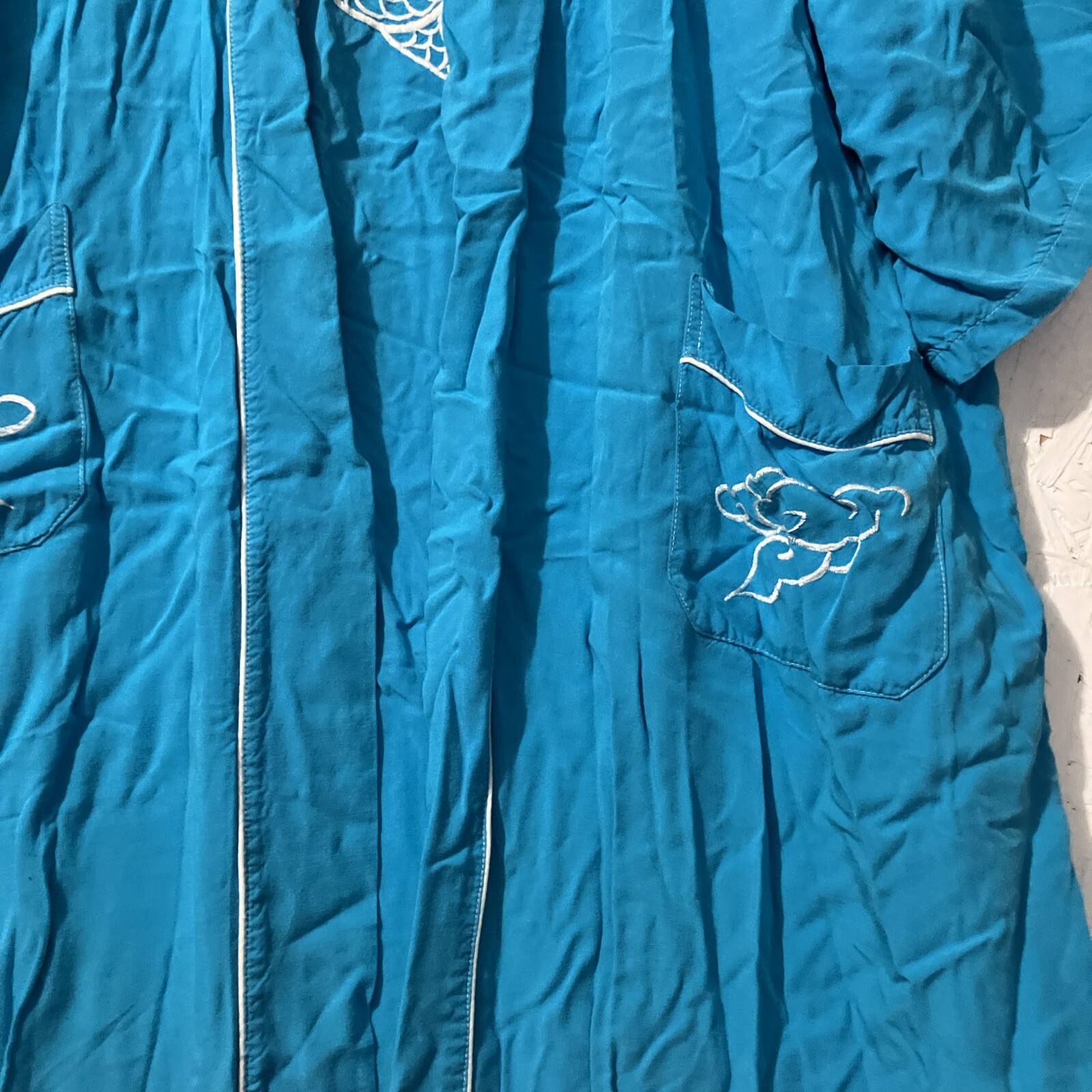 как выглядит Japanese Kimono Long Turquoise Embroidered Dragon Size Large Robe Lounge фото