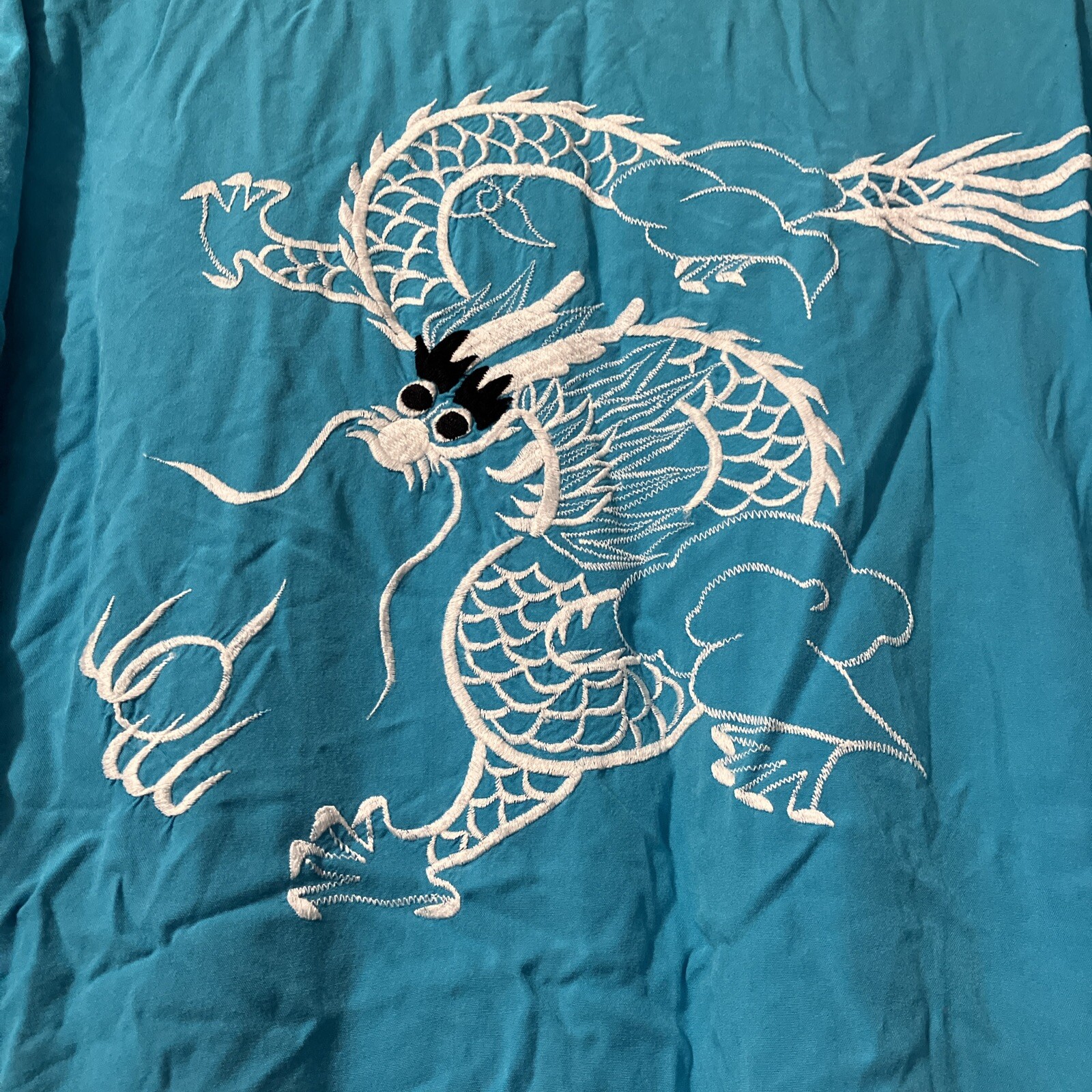 • Japanese Kimono Long Turquoise Embroidered Dragon Size Large Robe Lounge