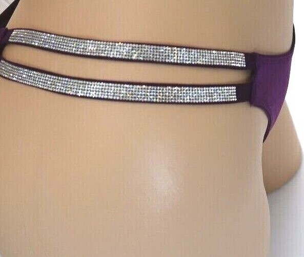 Victoria's Secret Rhinestone Strap Double Shine Strap Thong Panty Purple S M L