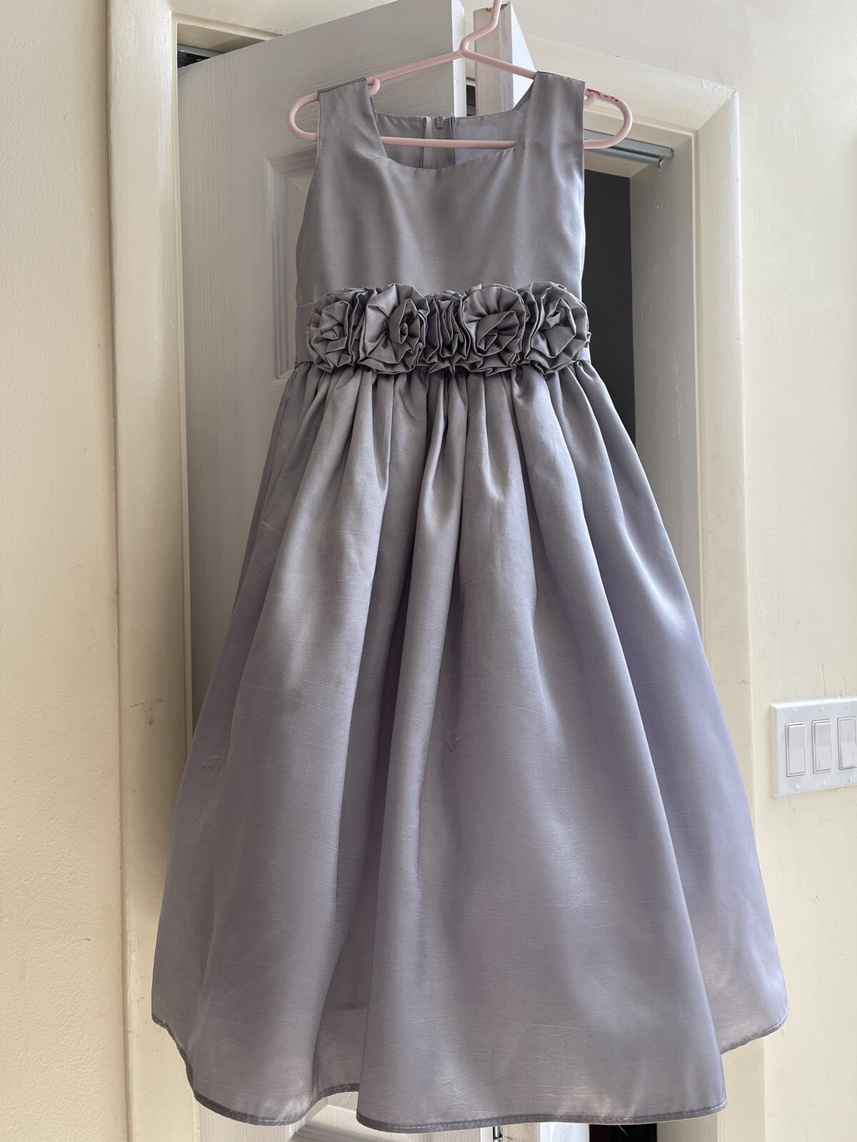Silver Taffeta Dress w/Flower Cummberband Wedding Formal Dress