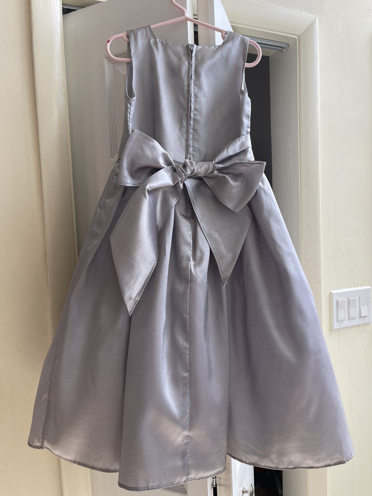 как выглядит Silver Taffeta Dress w/Flower Cummberband Wedding Formal Dress фото