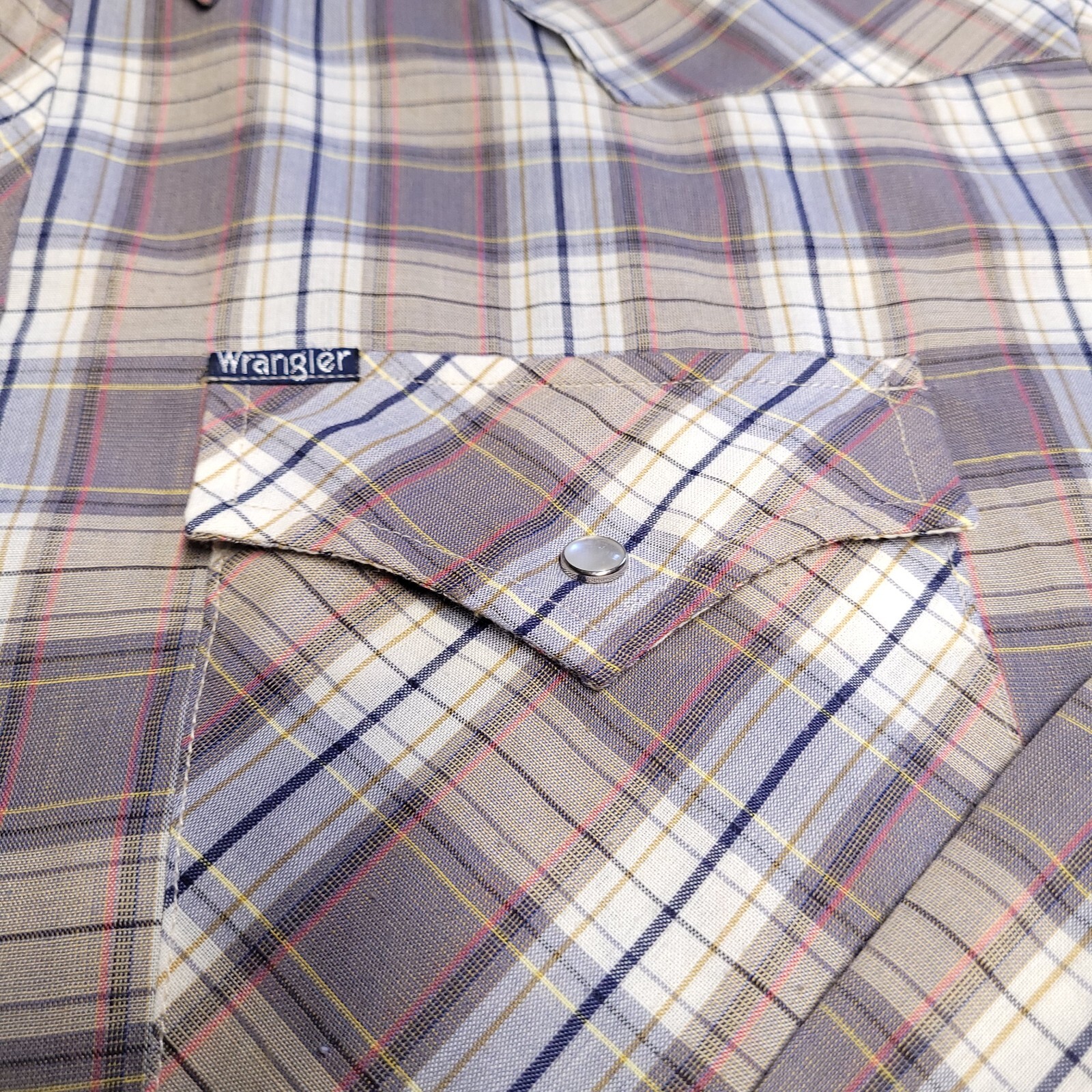 Vtg 80s Wrangler Large Pearl Snap Western Rockabilly Shirt Plaid Pocket USA