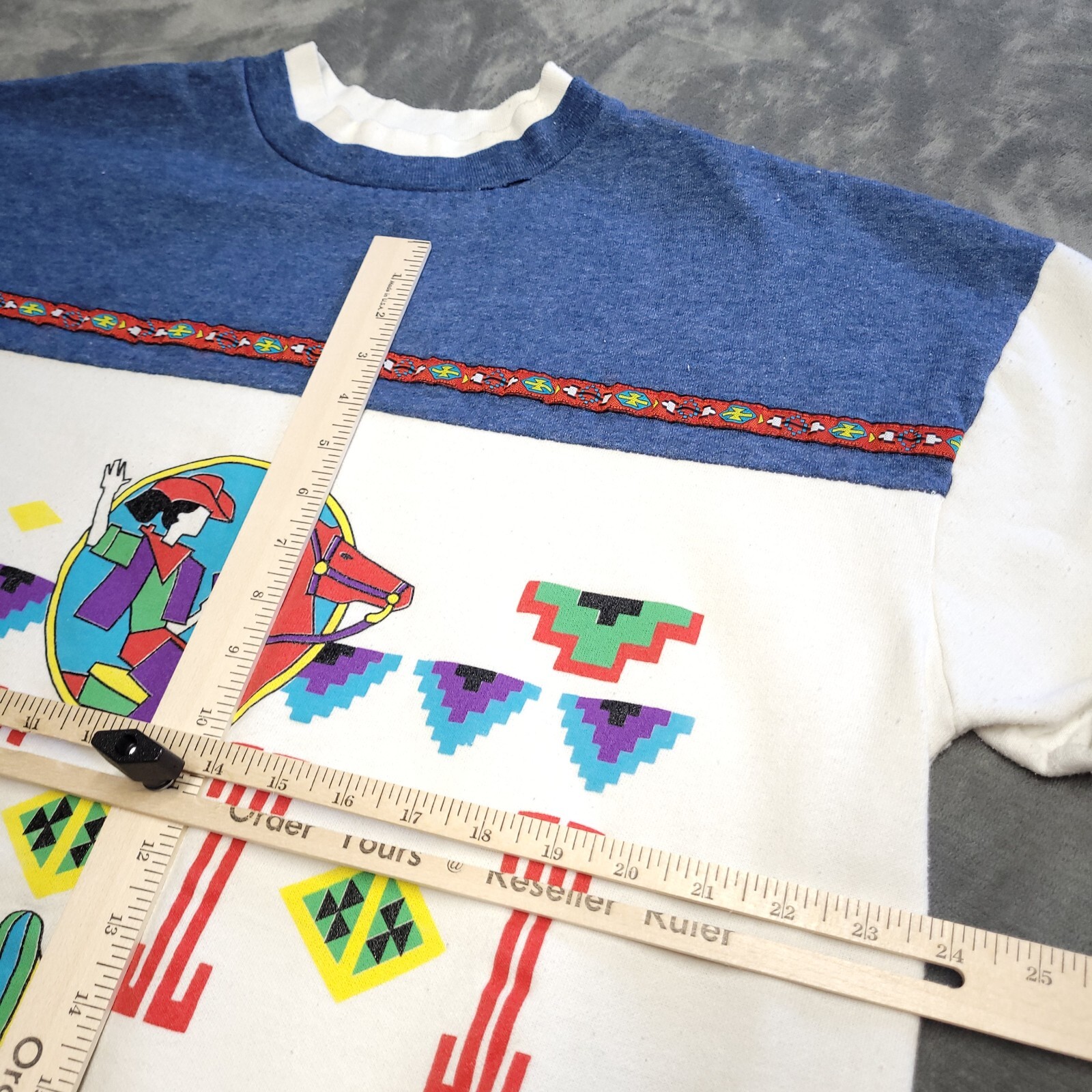 как выглядит Vtg 90s Aztec Cowgirl Horse Equestrian Large Ringer Crewneck Sweatshirt Made USA фото