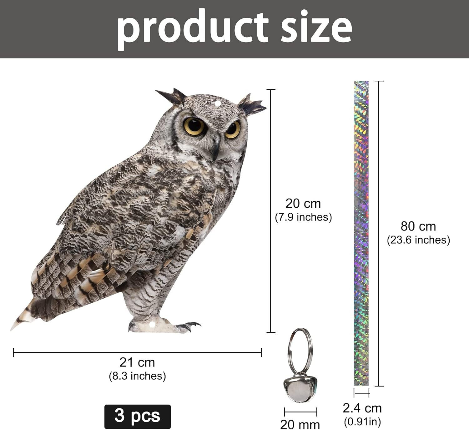Fake Owl Decoy to Scare Birds, 3 Pack Fake Owl Hanging Effective Bird Control D