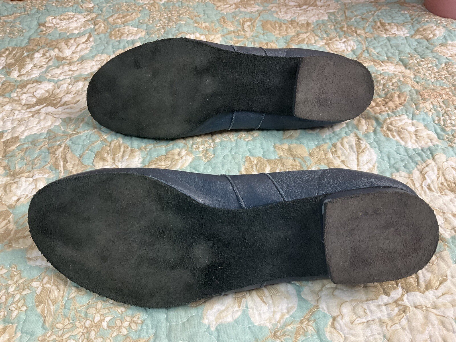 8 Navy Blue Leather Dance Shoe Flat Square Line Vintage Ballroom Strap Retro