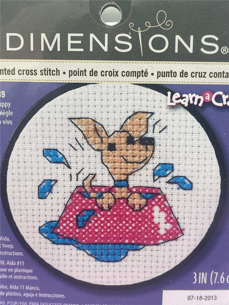 DIMENSIONS Counted Cross Stitch Kit PERKY PUPPY 3 Round - 73039