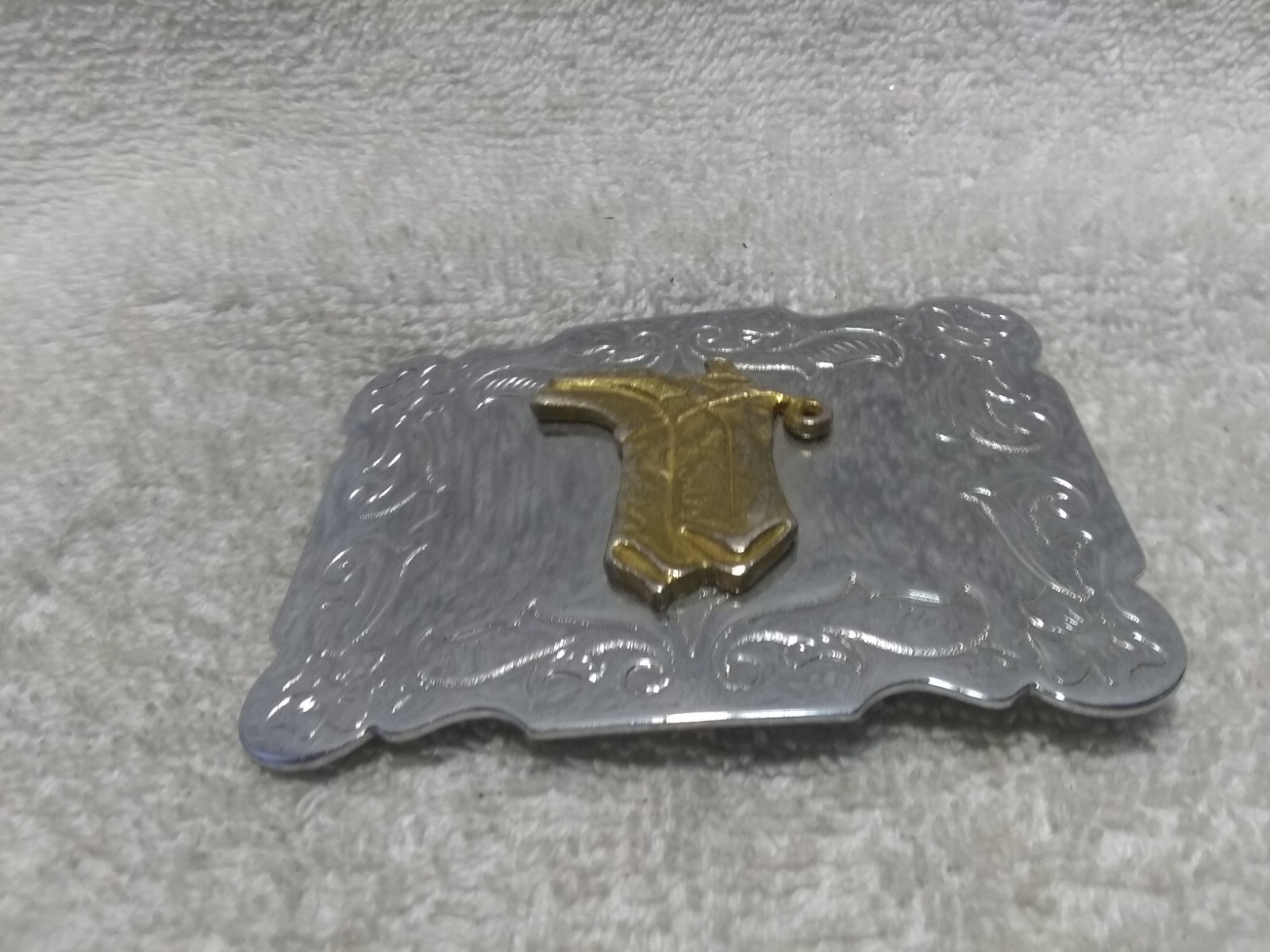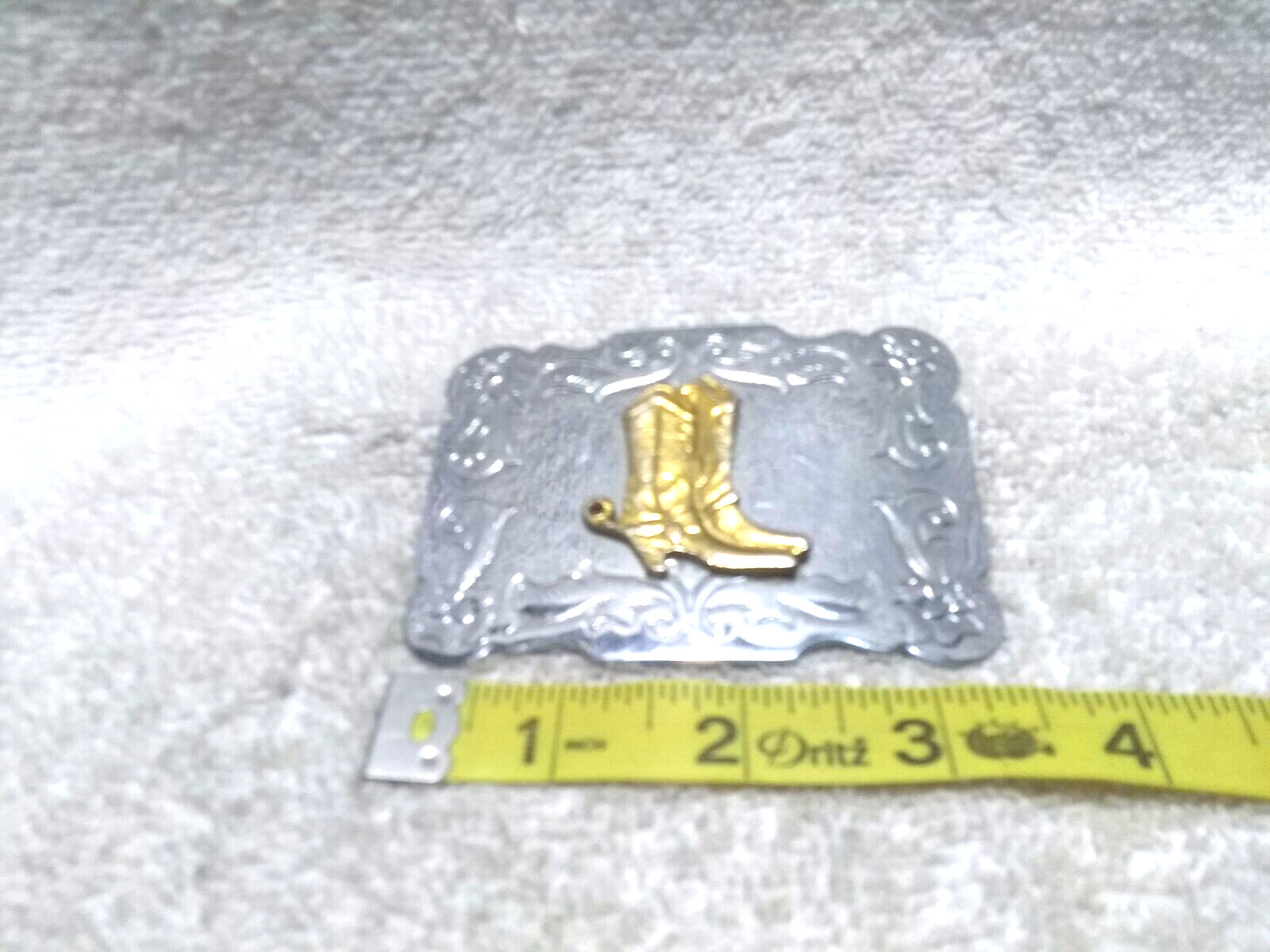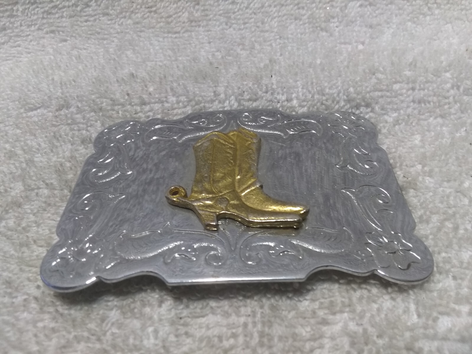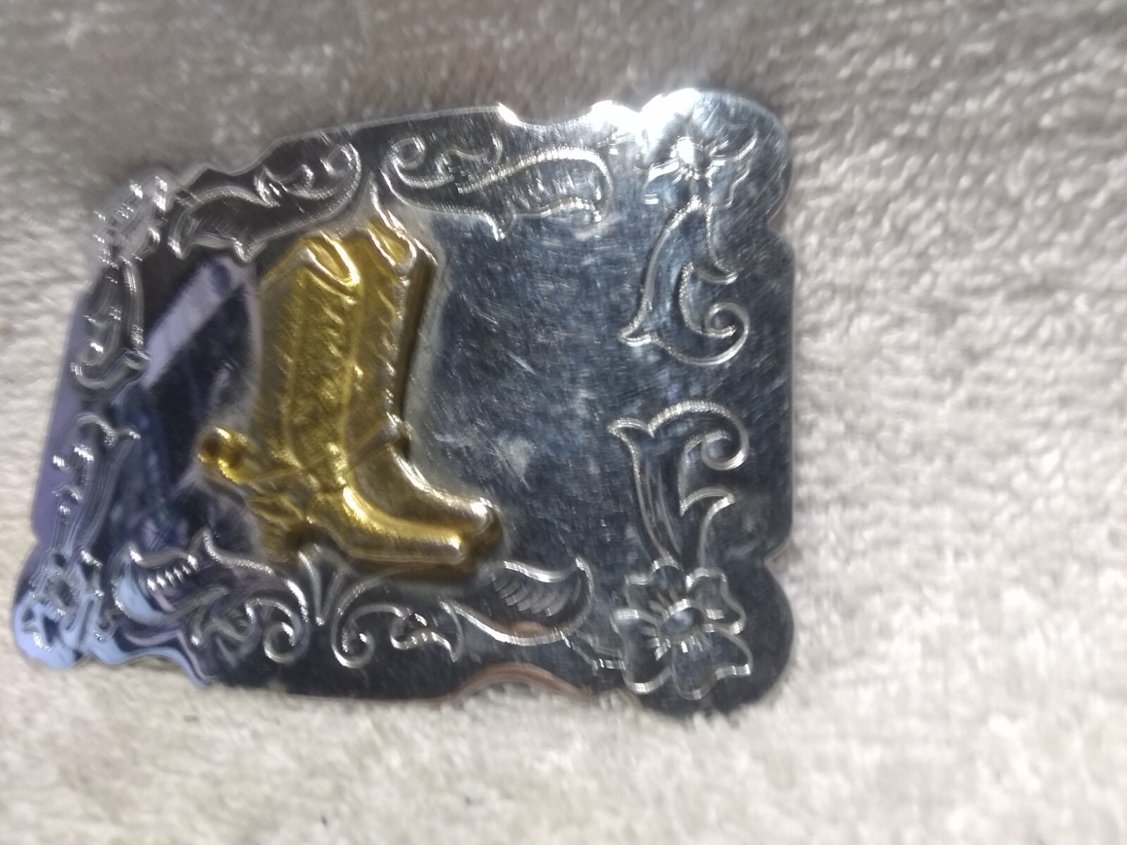 как выглядит Large Gold Western Boots Silver Engraved Swirling Edge Buckle Great Condition фото