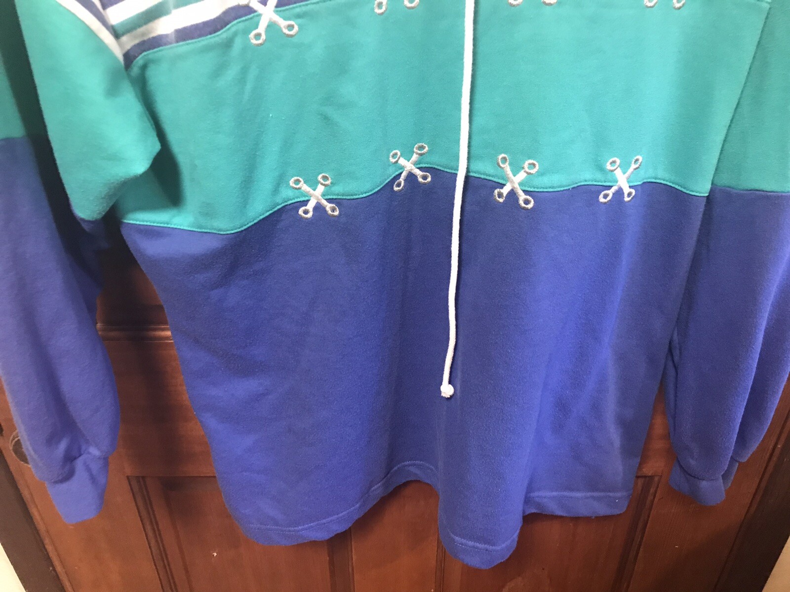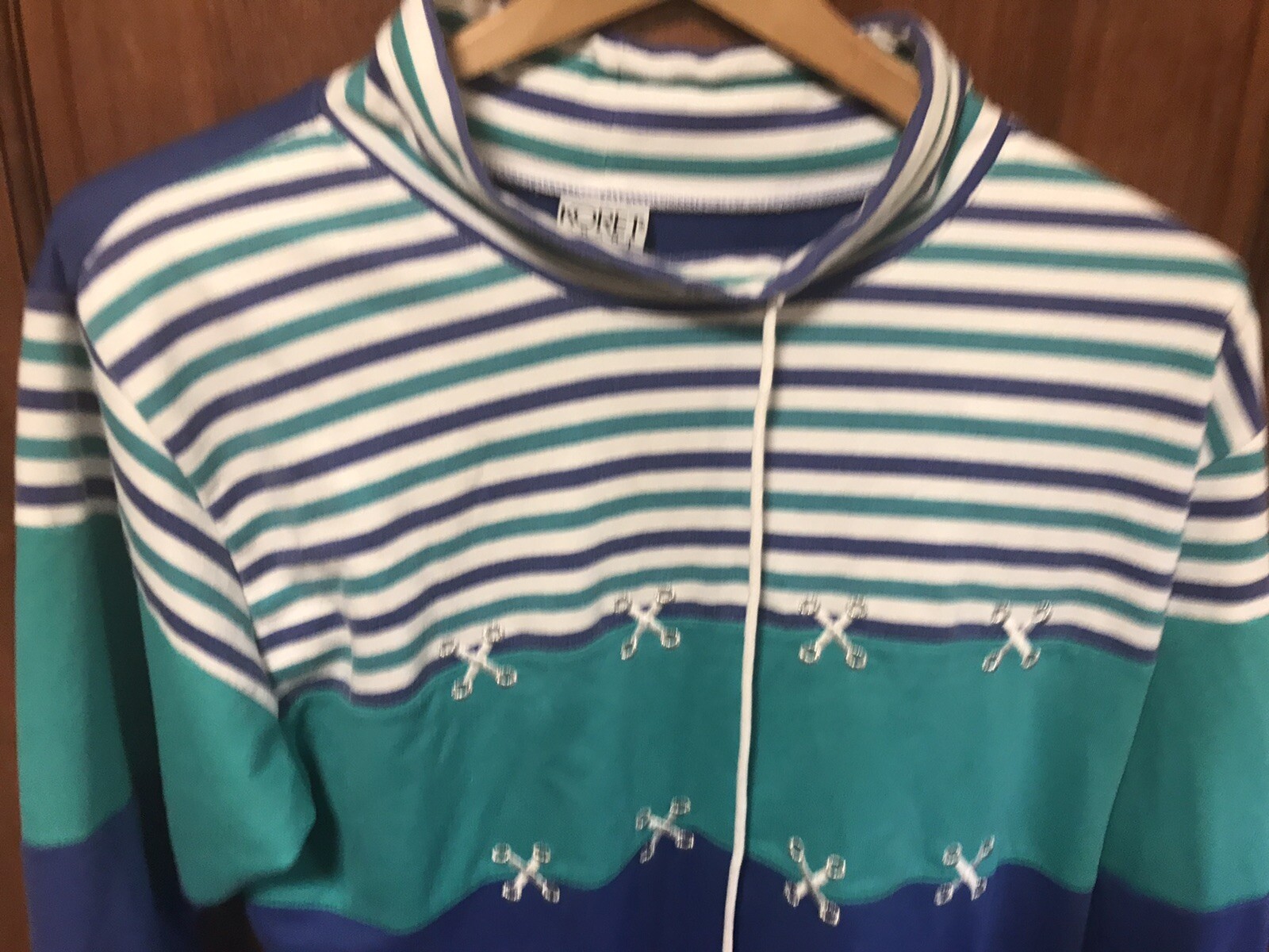 как выглядит Vtg Koret Sports 2 Piece Sweater Pants Women L Blue Striped Nautical 90s GUC фото
