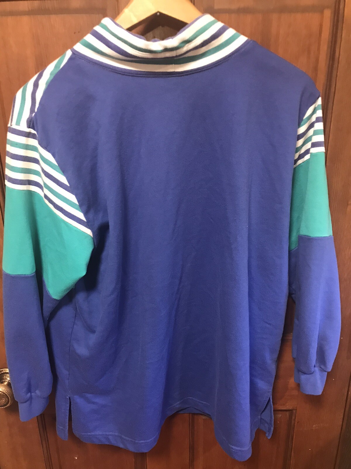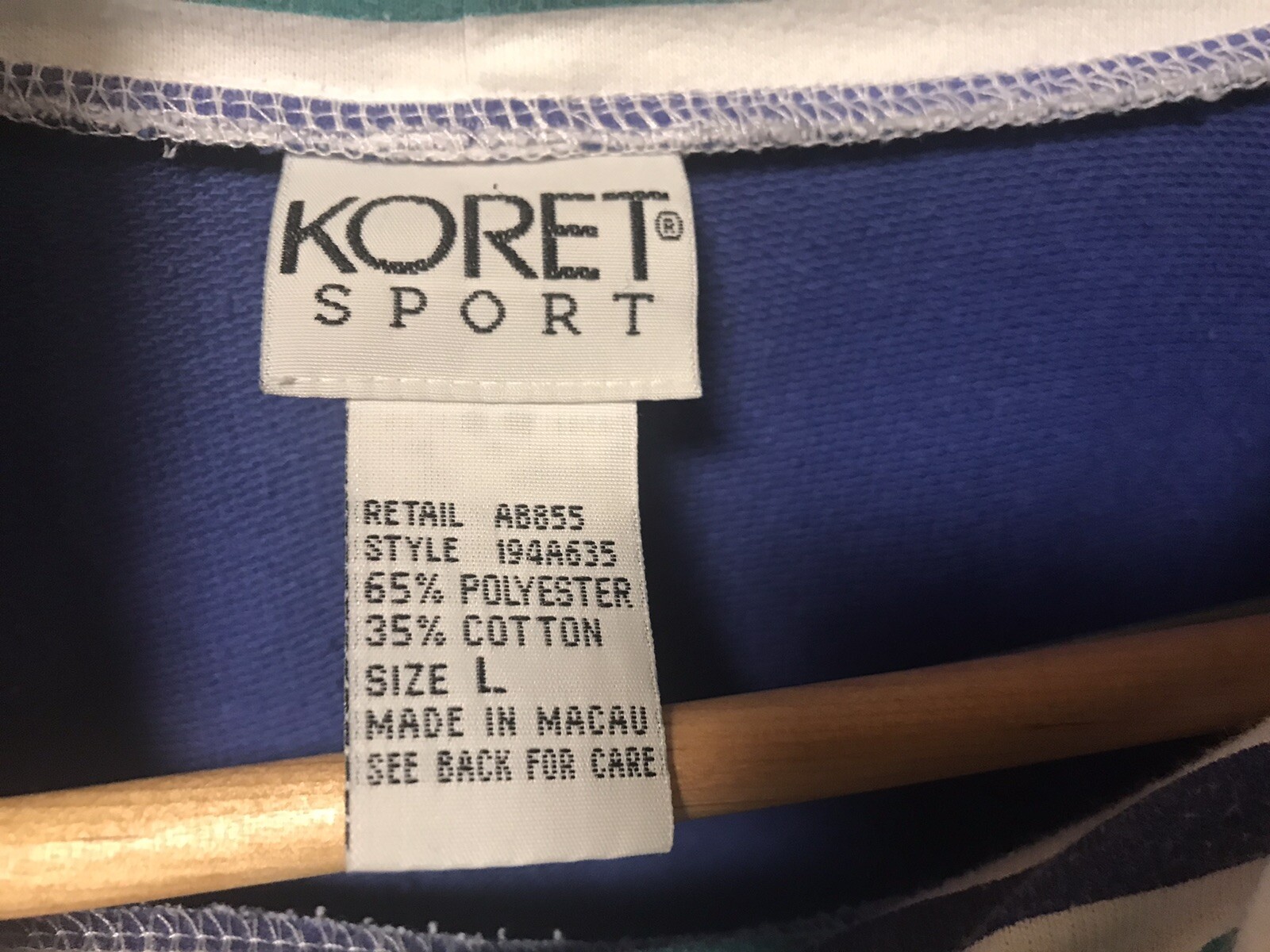 как выглядит Vtg Koret Sports 2 Piece Sweater Pants Women L Blue Striped Nautical 90