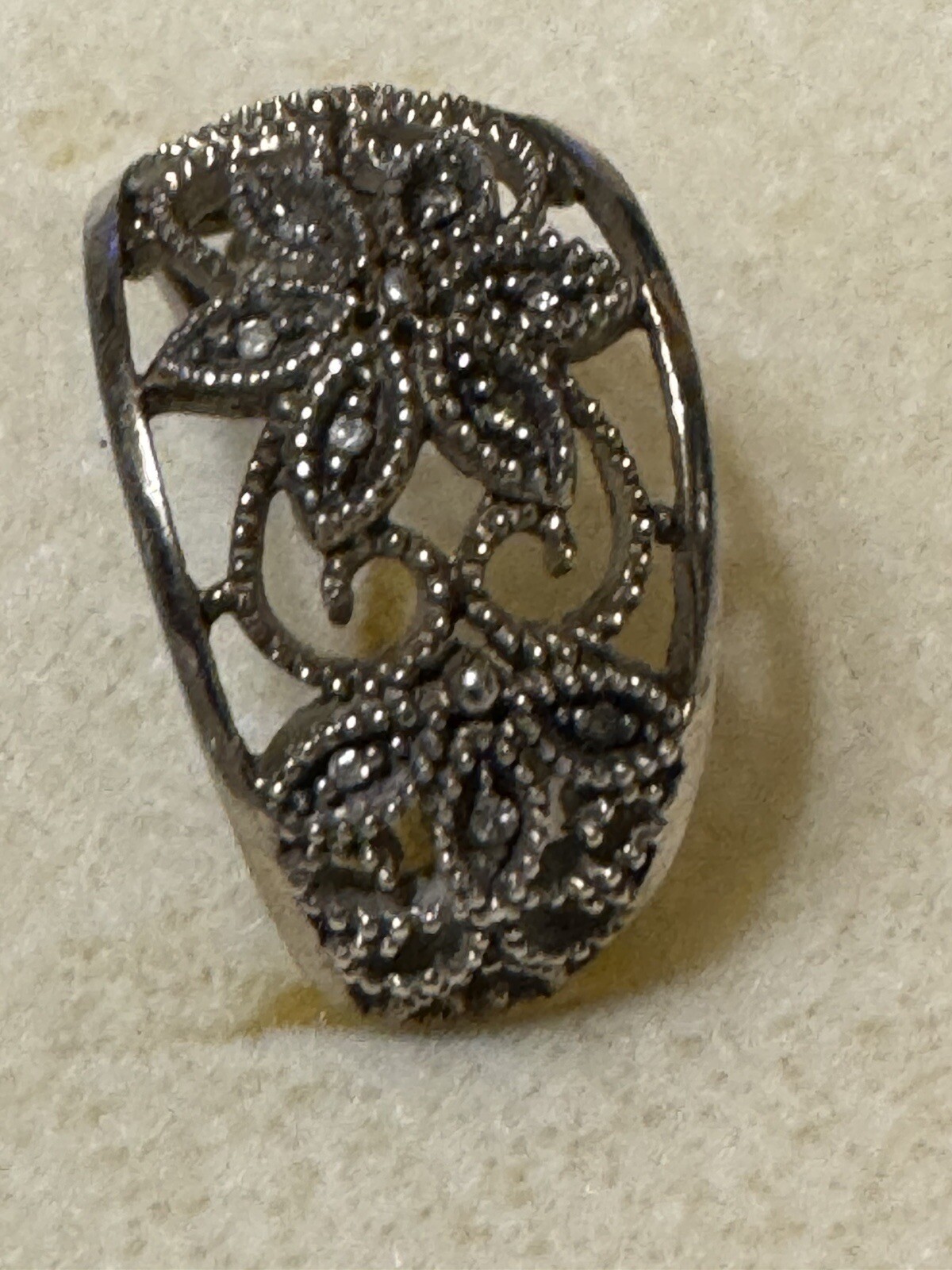 Gold Vermeil 925 Sterling Silver Open Lattice Work Flower Ring w/CZ 3.9 G Sz 6.5