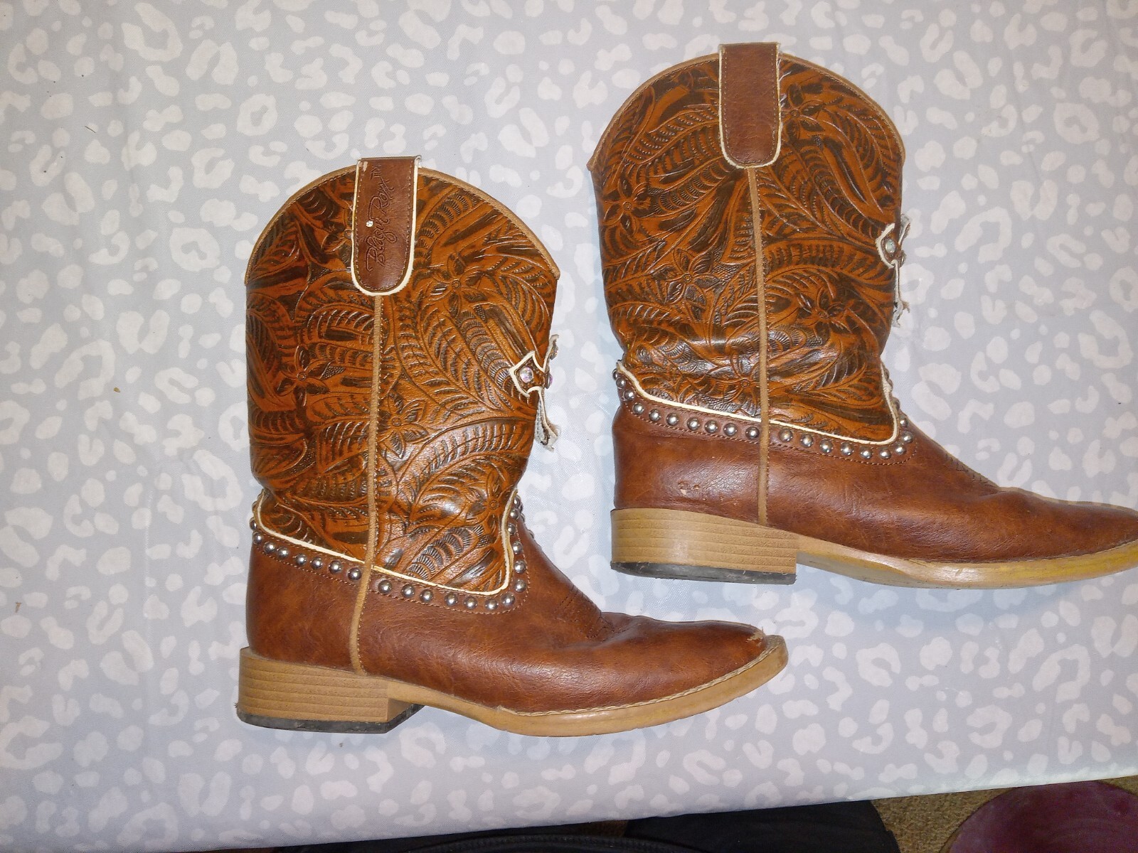 Blazin Rocks Youth Western Boots. Size 2.5 Children. Dark Tan Leather Patterned