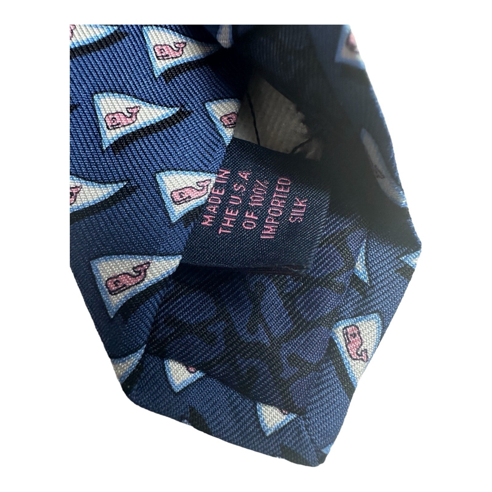 Vineyard Vines Blue Flag Whale AOP Silk Mens Tie 3.25 Inch Width