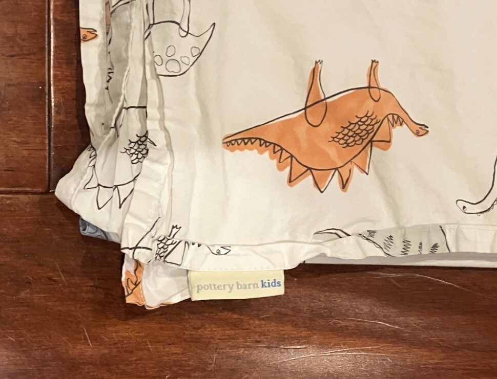 как выглядит Pottery Barn Kids Dinosaurs Twin Flat Sheet Orange Blue Gray фото
