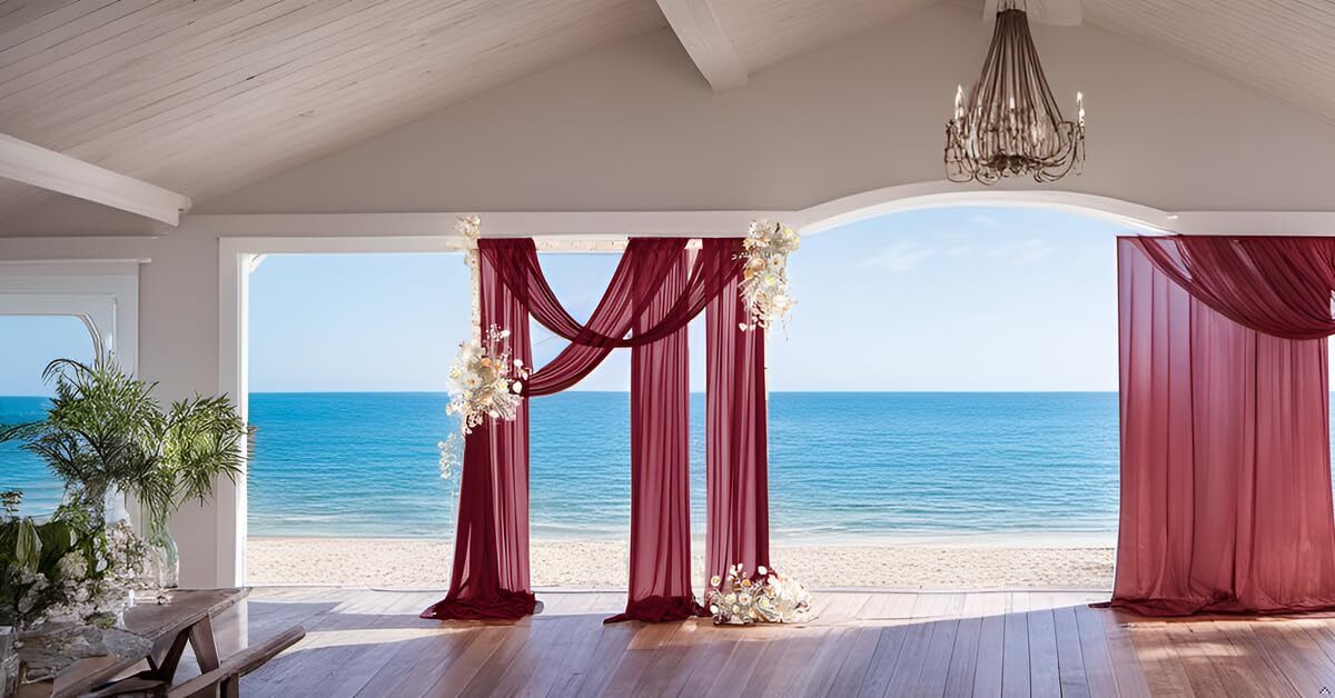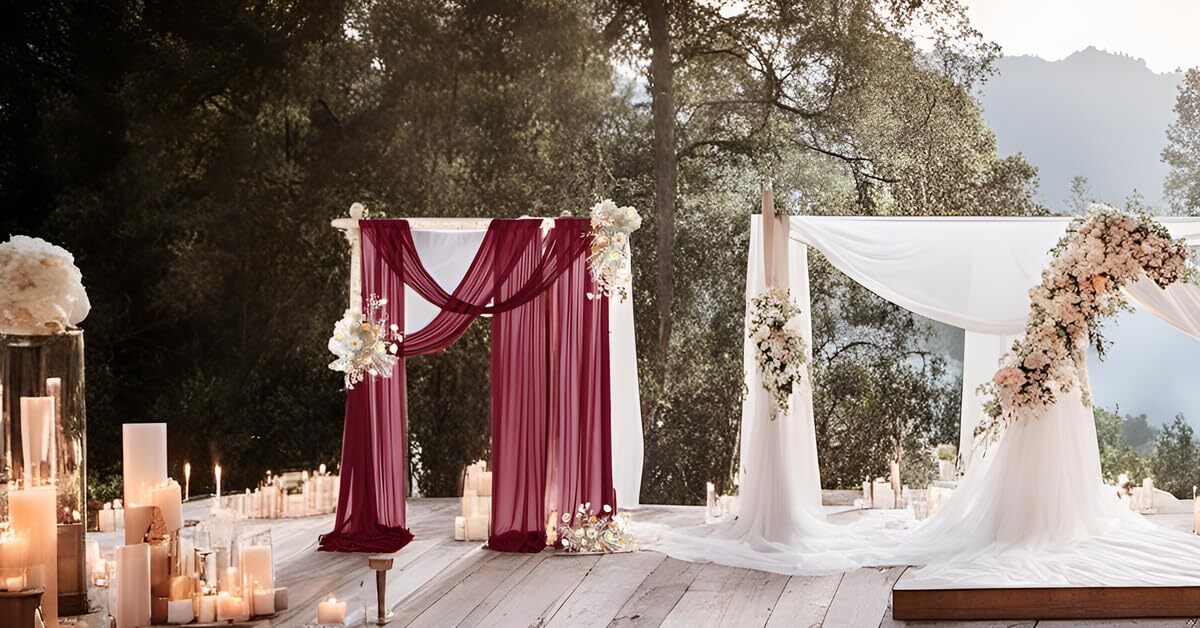 MLMW Wedding Arch Draping Fabric 2 Panels 29 x 20Ft Sheer Arch Drapes Burgun...
