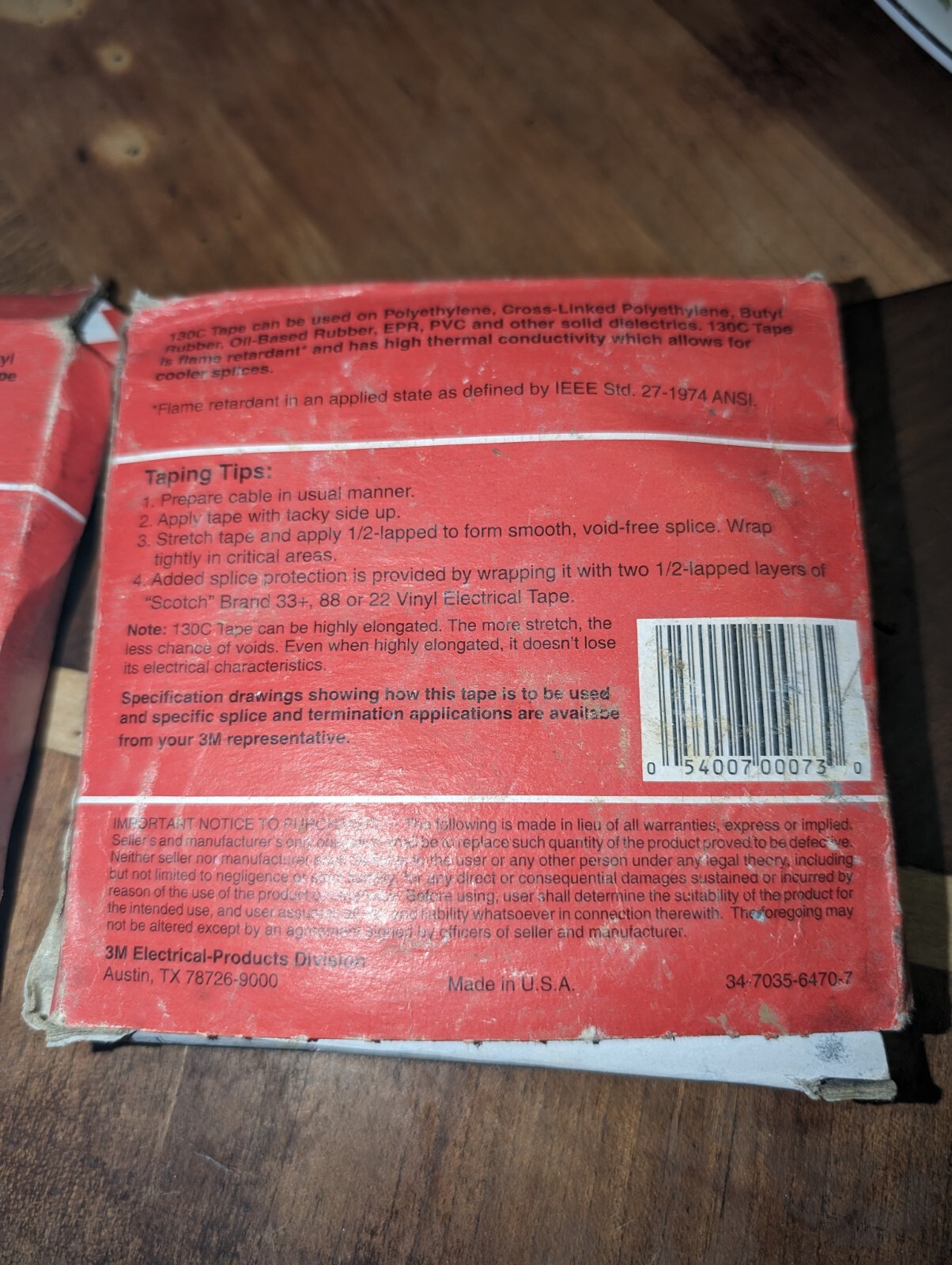 2 3M SCOTCH 130C LINERLESS RUBBER SPLICING TAPE 3/4 IN x 30 FT X .030