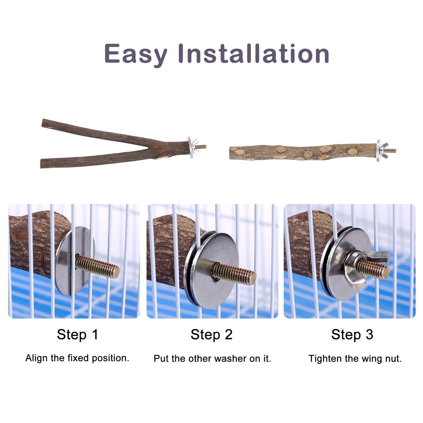 CozyCabin Natural Wood 4Pcs Bird Perches Stand Hanging Cage Toys Accessories ...