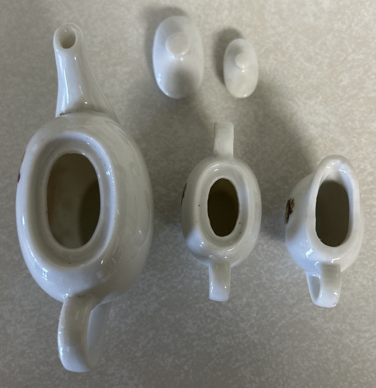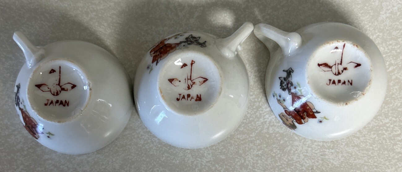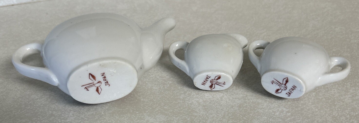 как выглядит VINTAGE YOUNG GIRL KITTEN PLAYING CERAMIC TOY TEA SET PLATES/CUPS/TEAPOTS фото