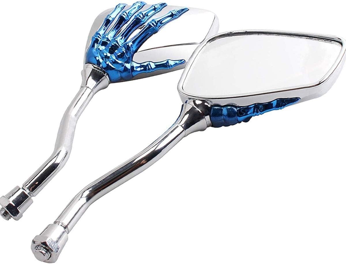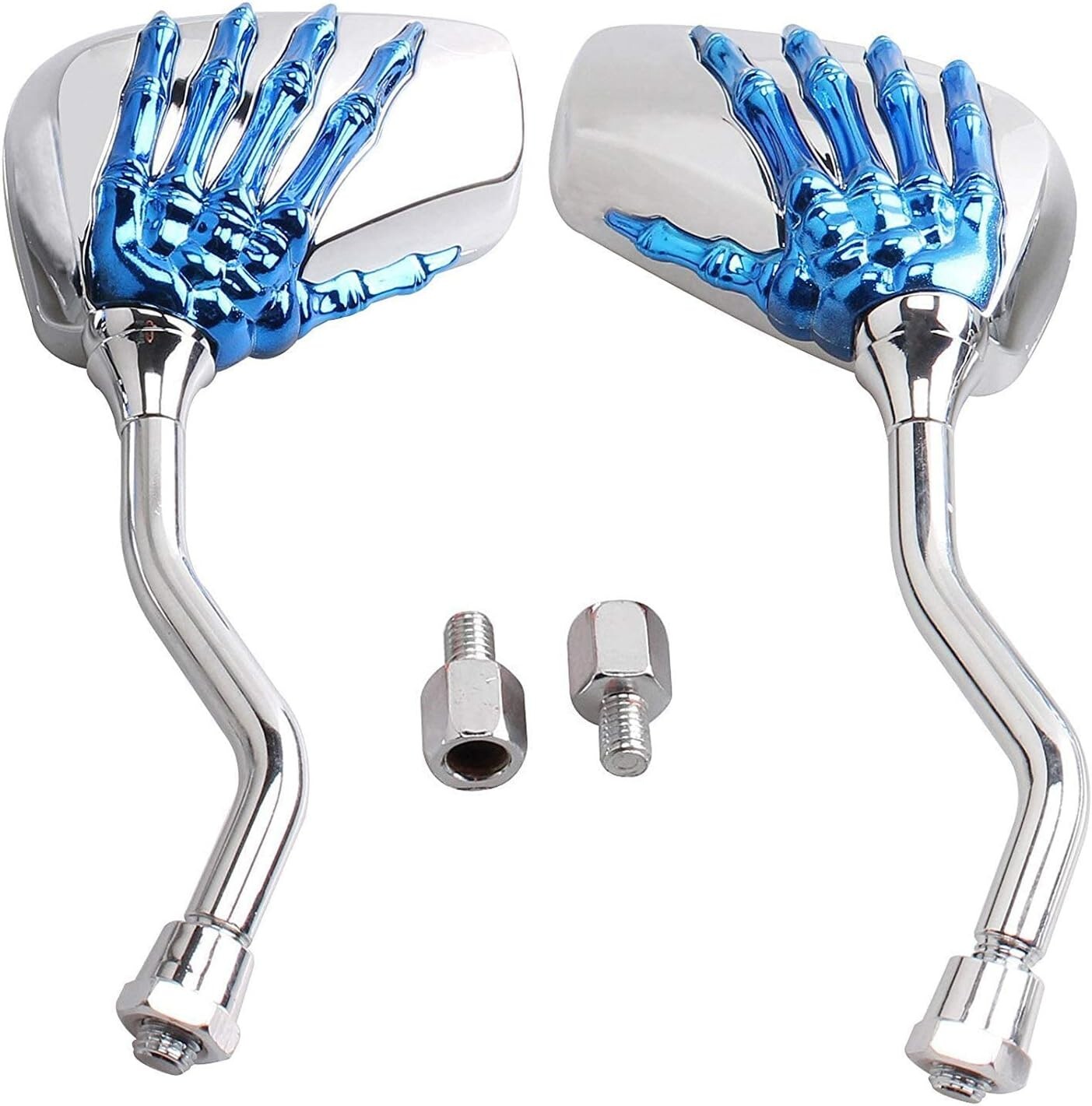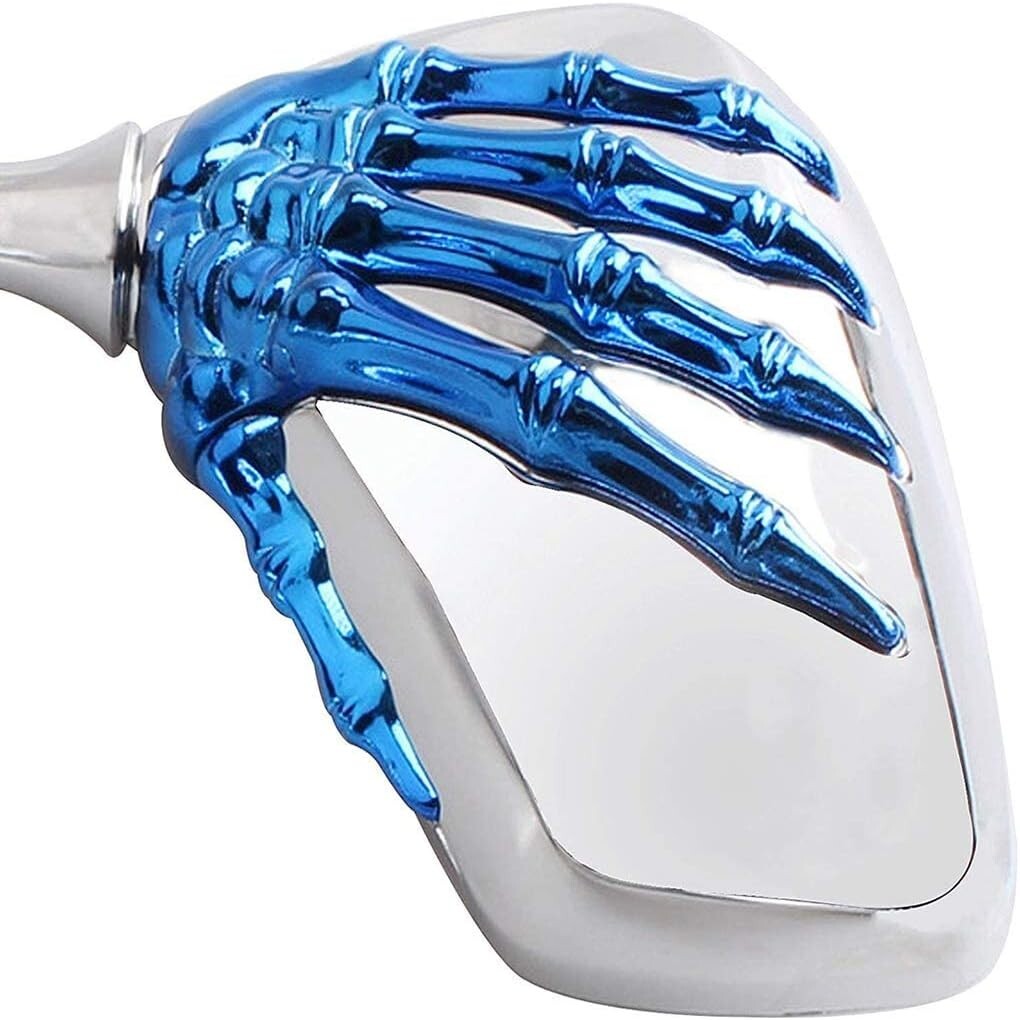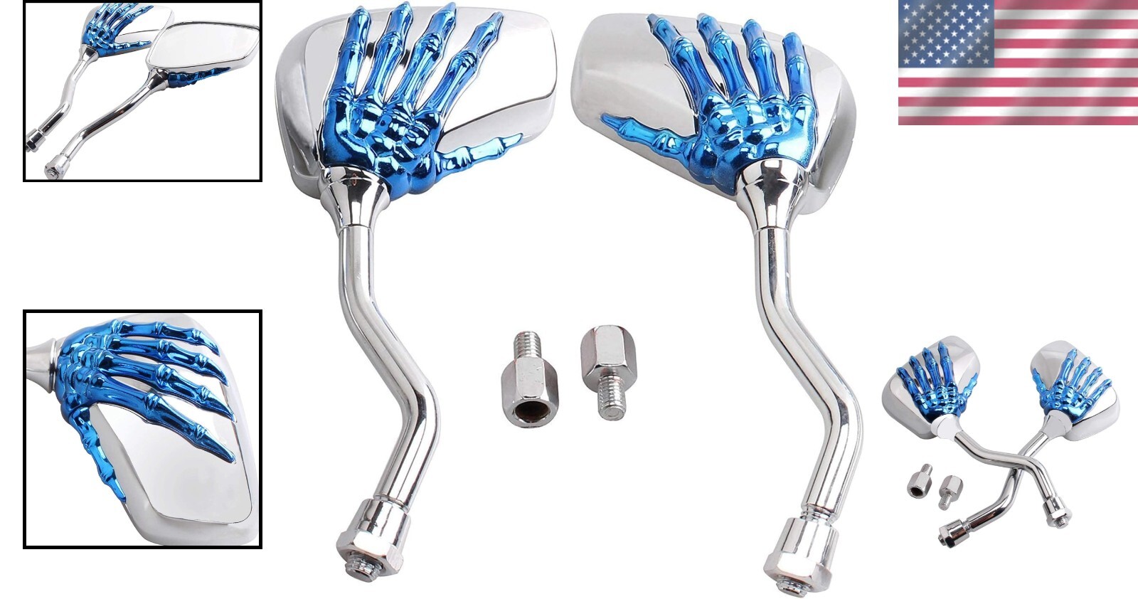 Pair of Distinctive Skeleton Hand Motorcycle Rearview Mirrors 8mm 10mm Blue
