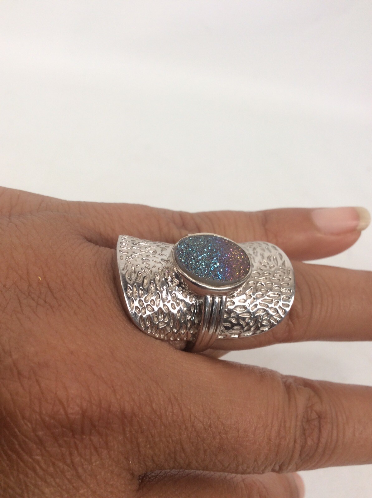 Beautiful Statement sterling Silver 925 Druzy ring size 7