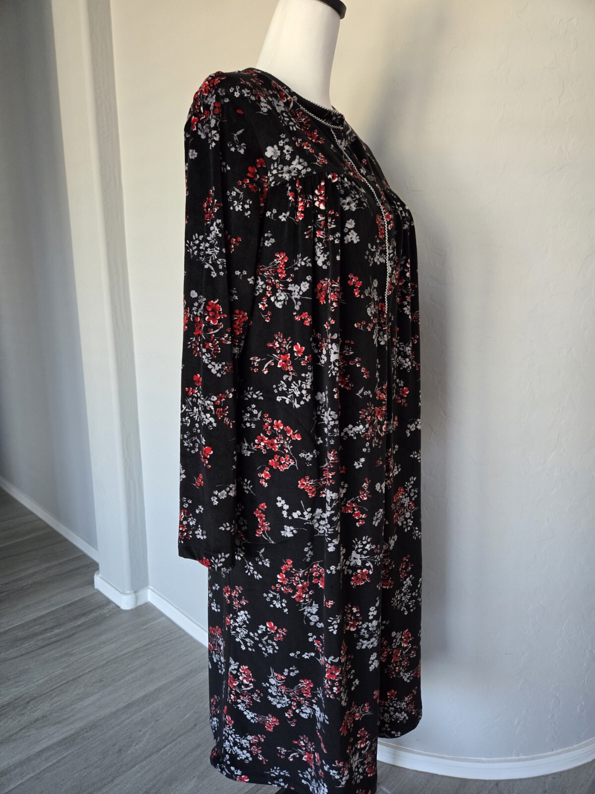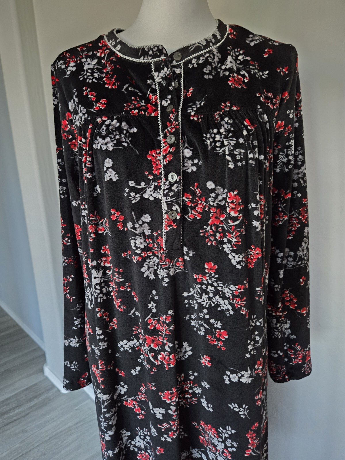 Aria Collection Nightgown Floral Velour Fleece Soft Long Sleeve Black Sz M