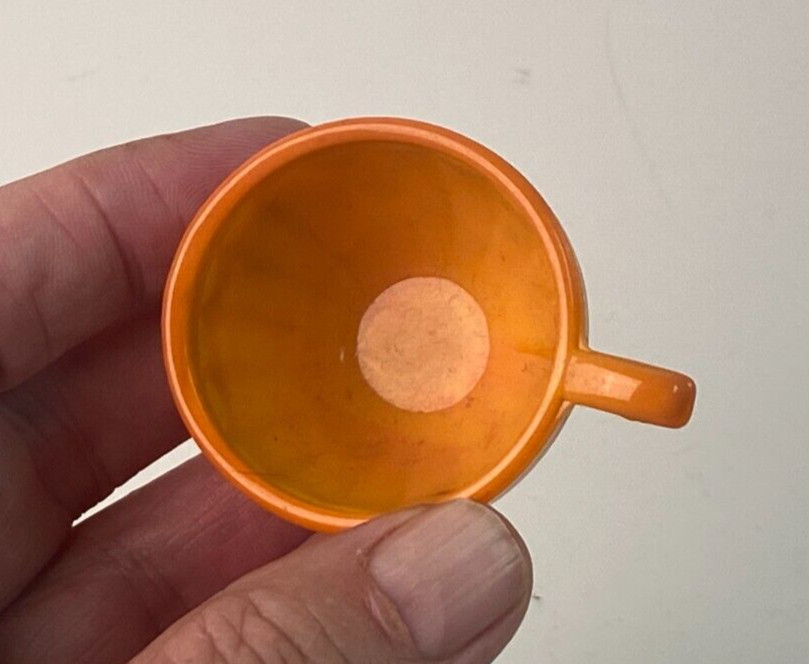 Akro Agate Tea Set Small Pumpkin Cup Stacked Disc Interior Panel