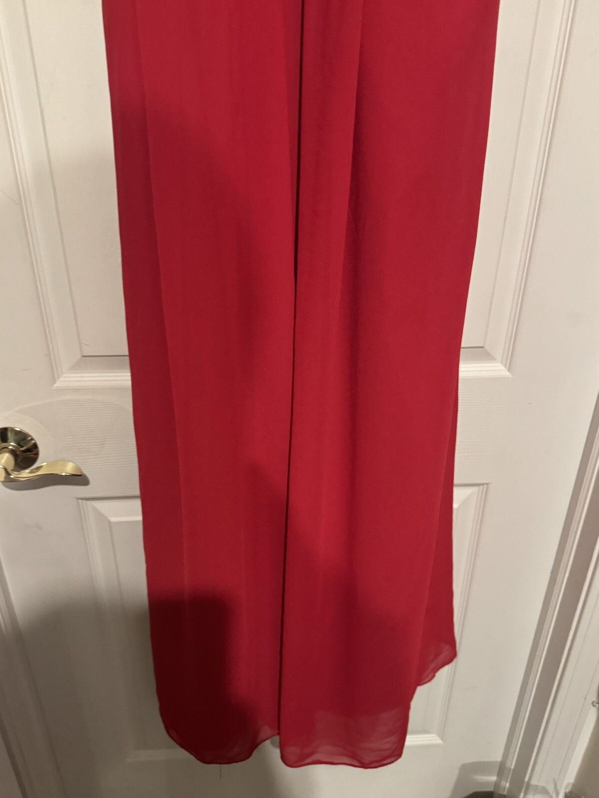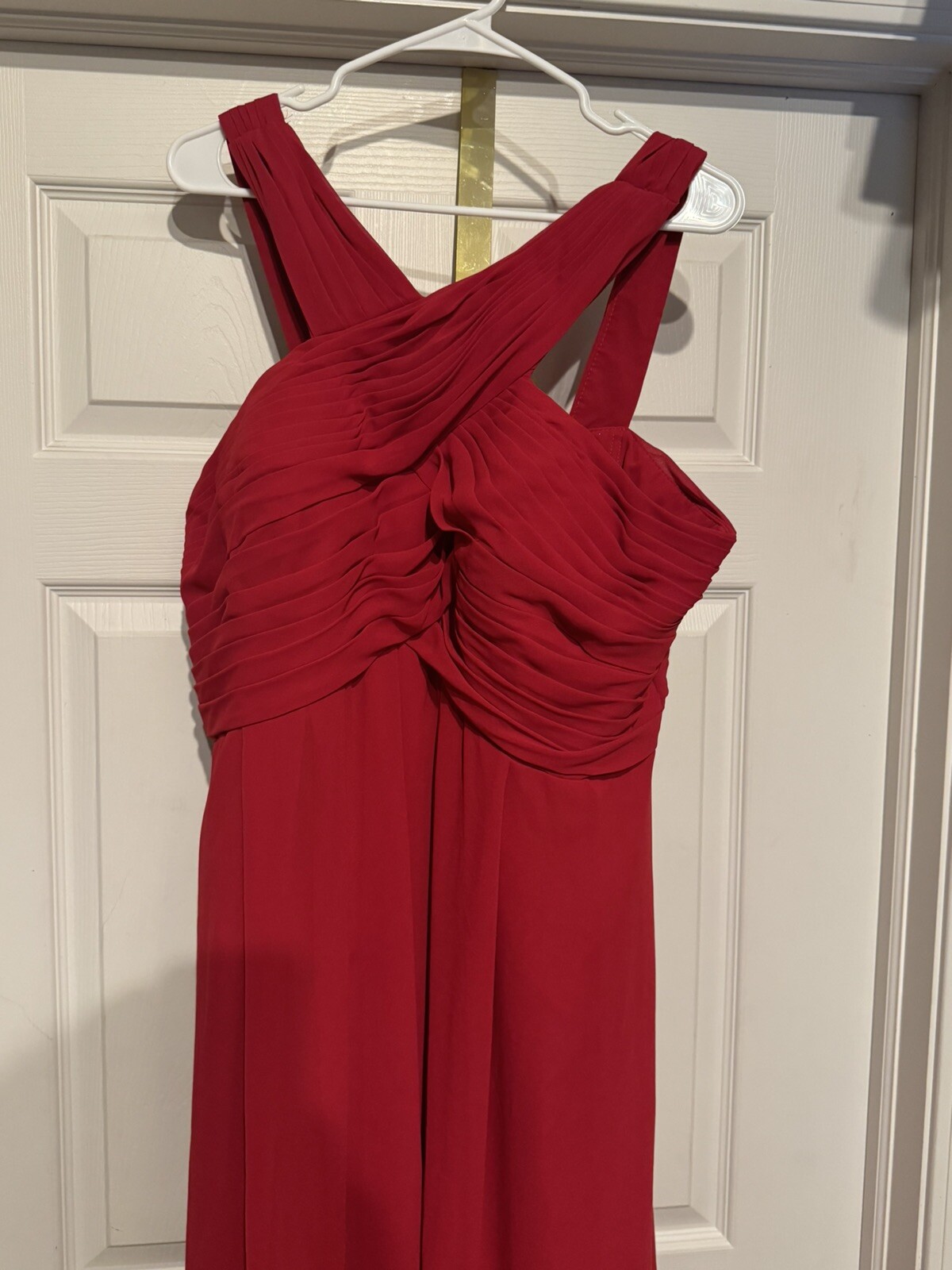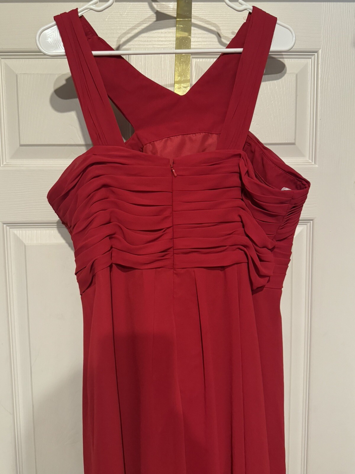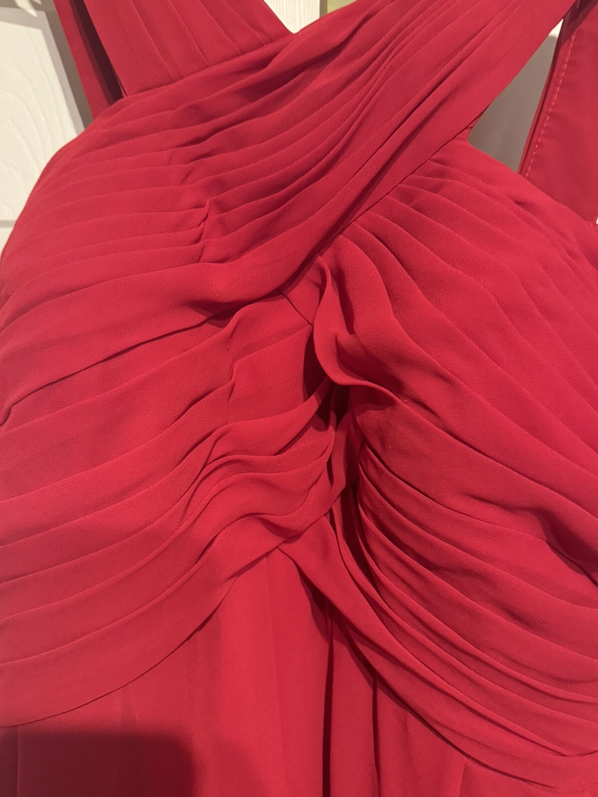 как выглядит Bill Levkoff Red Chiffon Ruched Crisscross Bodice Dress Gown Womens Size 22 фото