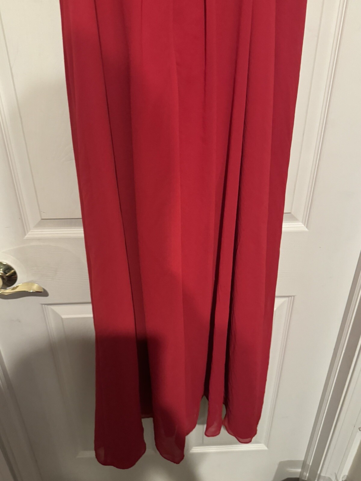 Bill Levkoff Red Chiffon Ruched Crisscross Bodice Dress Gown Women's Size 22