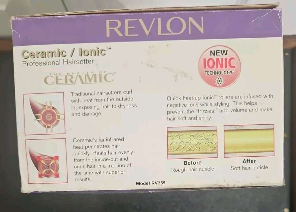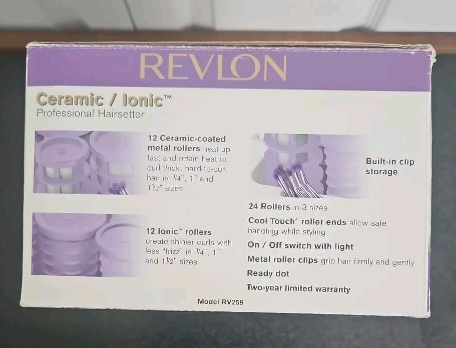 REVLON HOT CURLERS with clips Ceramic / Ionic Purple Curlers In Box EUC