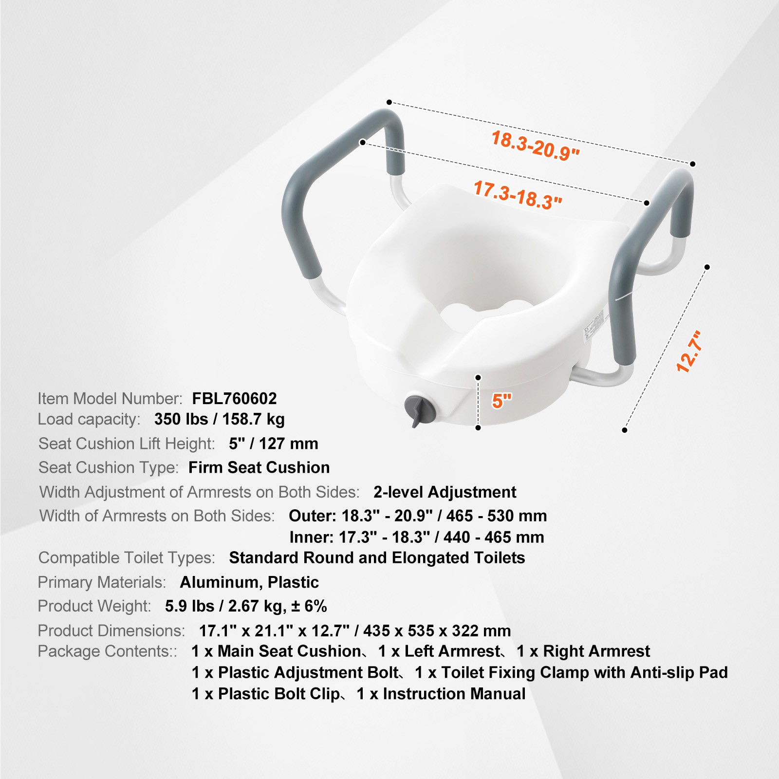 Uimoso Raised Toilet Seat 5 Height Raised 350lbs Universal Toilet Lockable