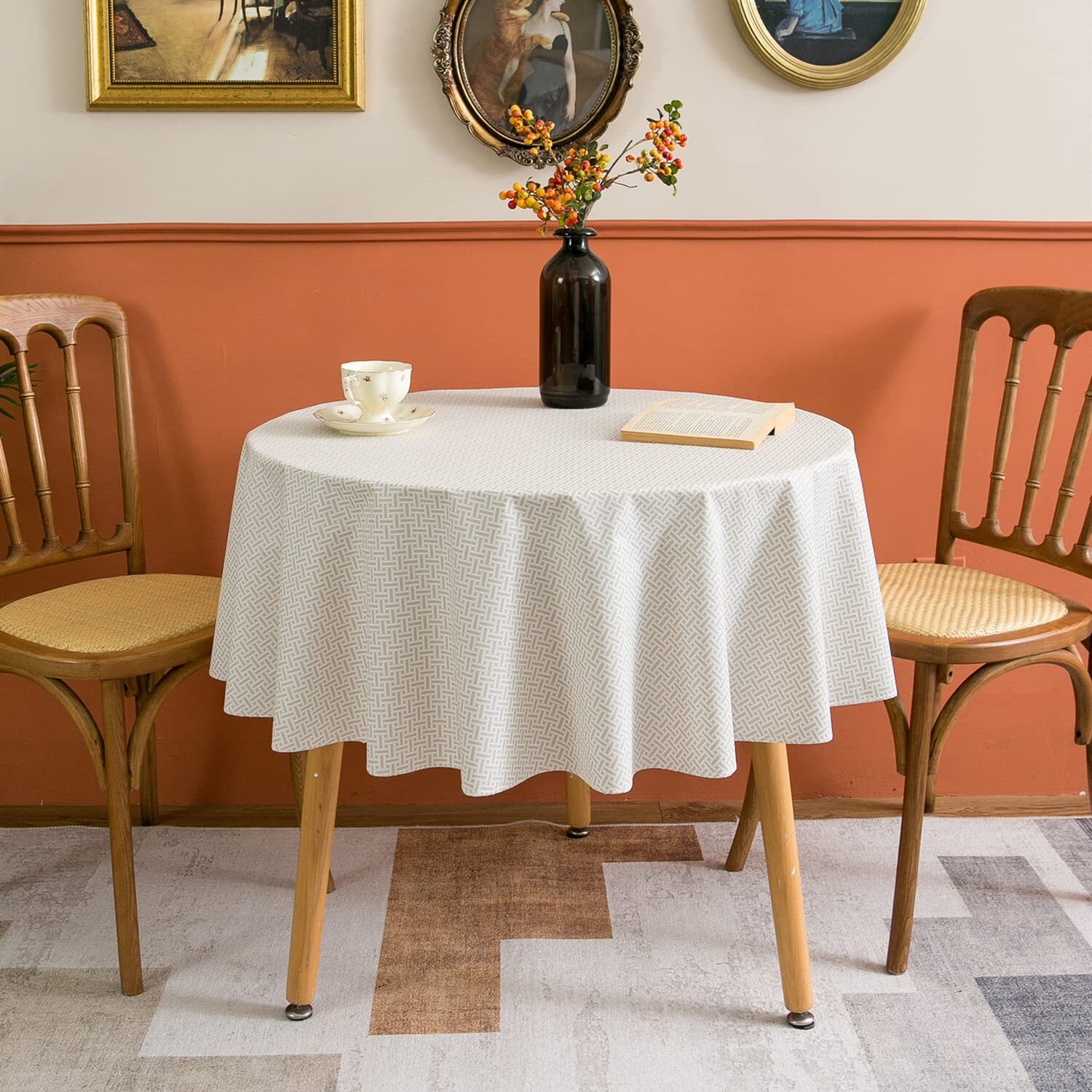 Vinyl Tablecloth with Flannel Backed Waterproof Oil-Proof PVC Table Cloth Wip...