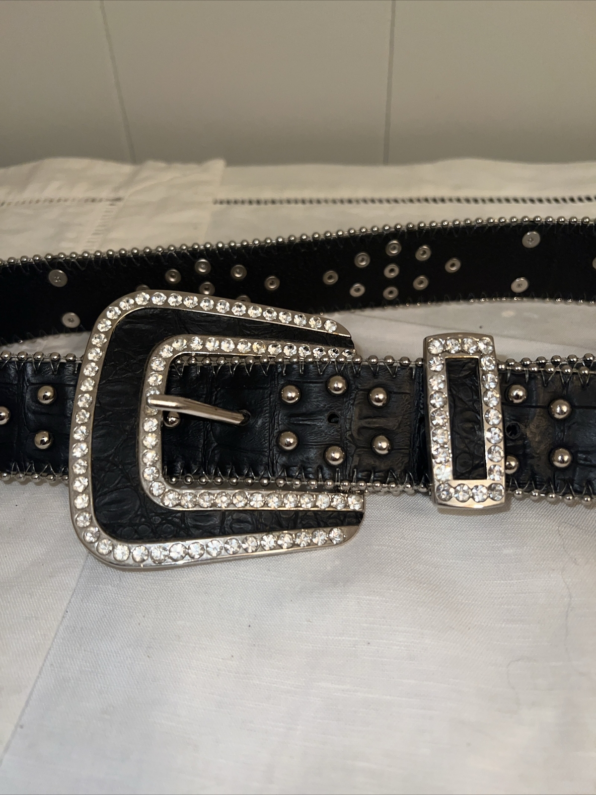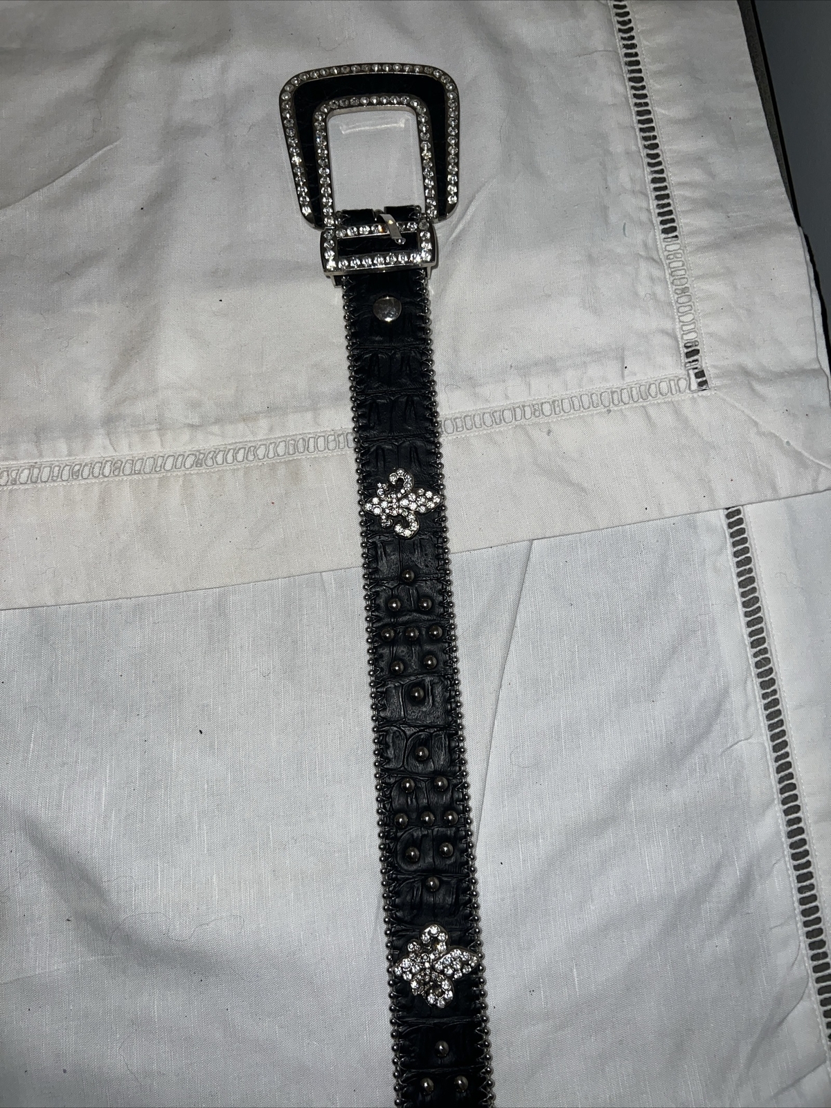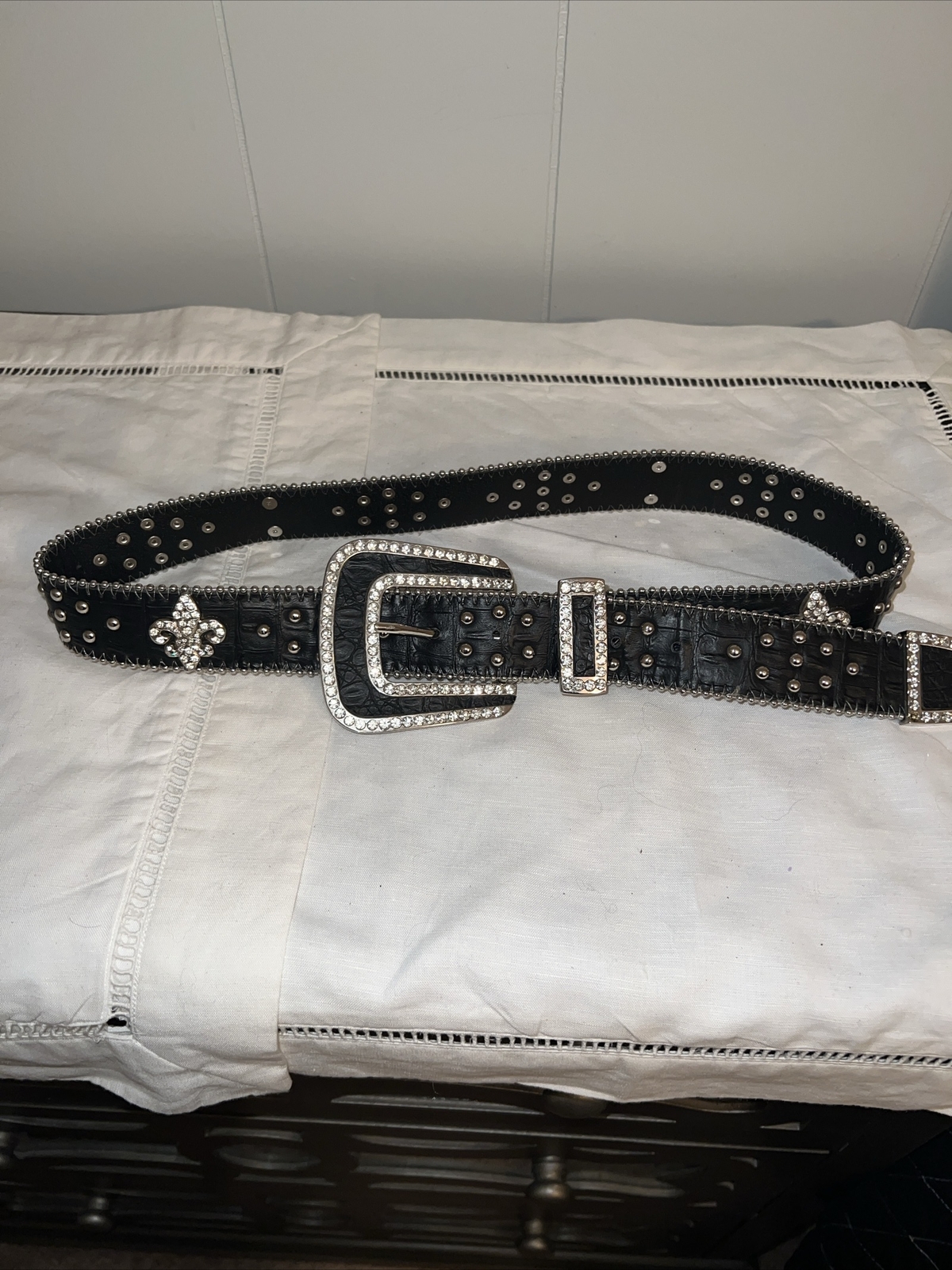 как выглядит Women s Boutique Rhinestone Fleur de lis Belt фото