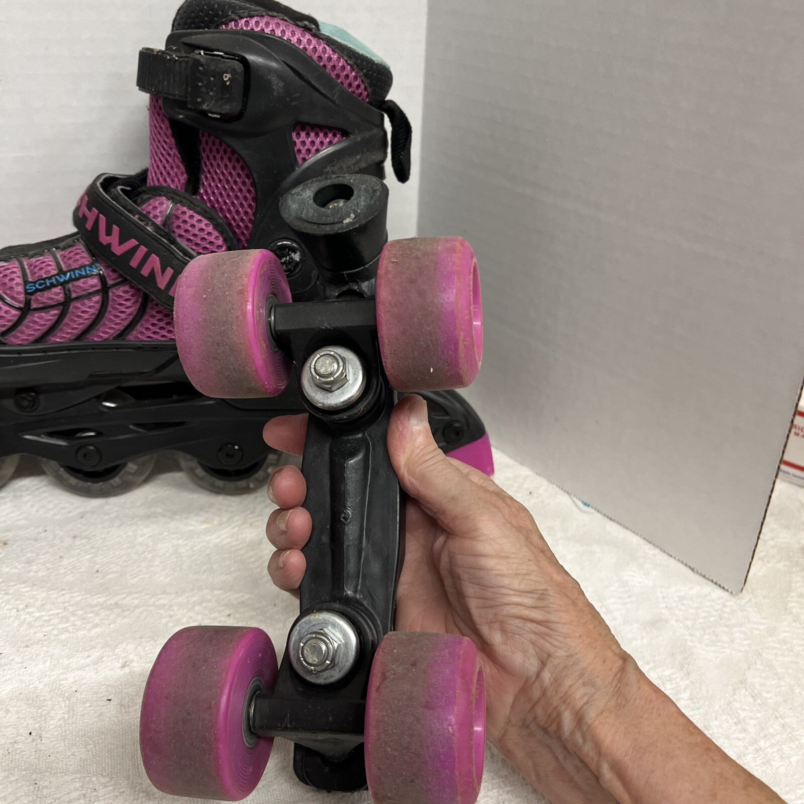 как выглядит Girls Schwinn Adjustable Fit Switcher 2 in 1 Inline/Quad Skates Sizes 1-4 Pink фото